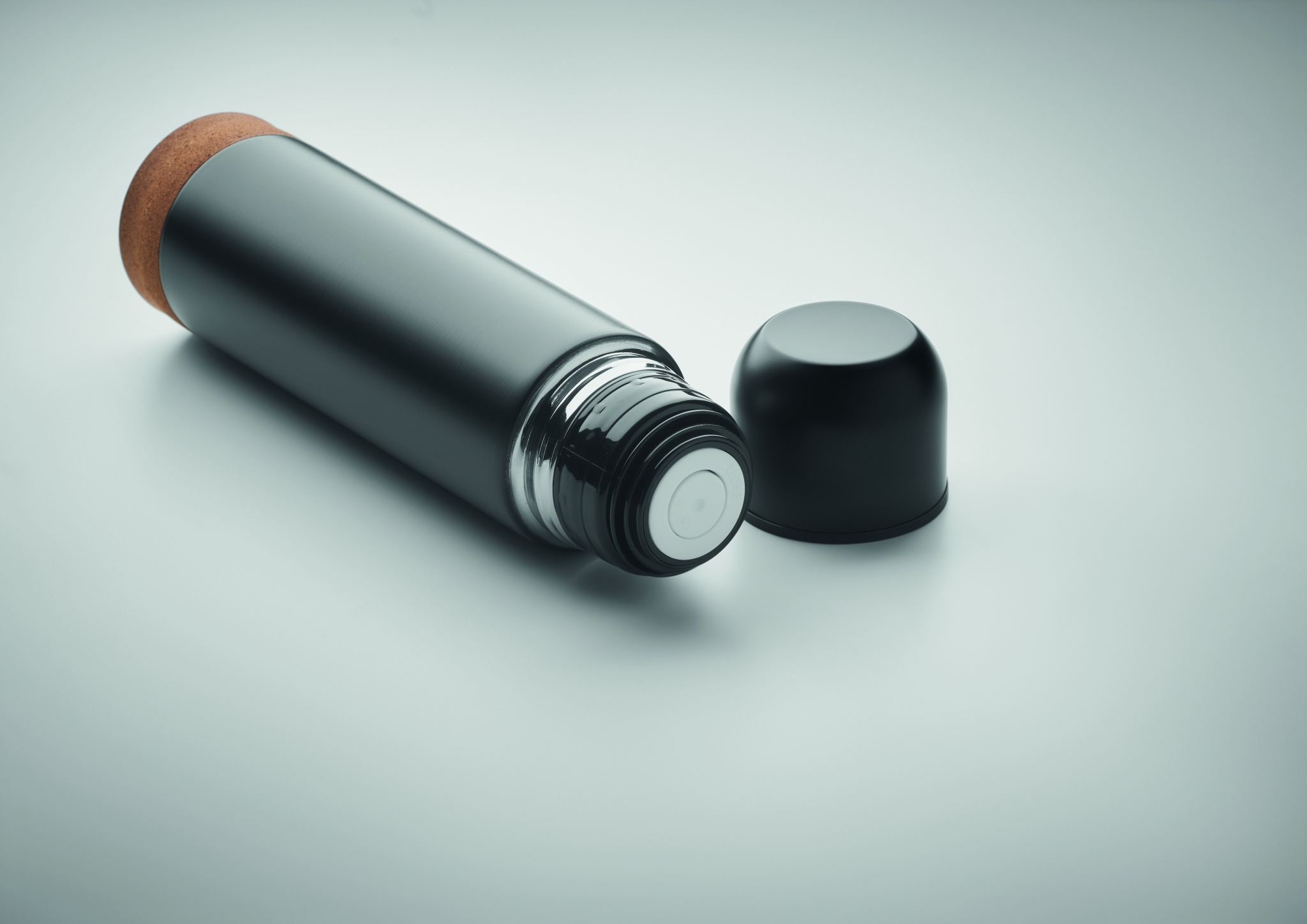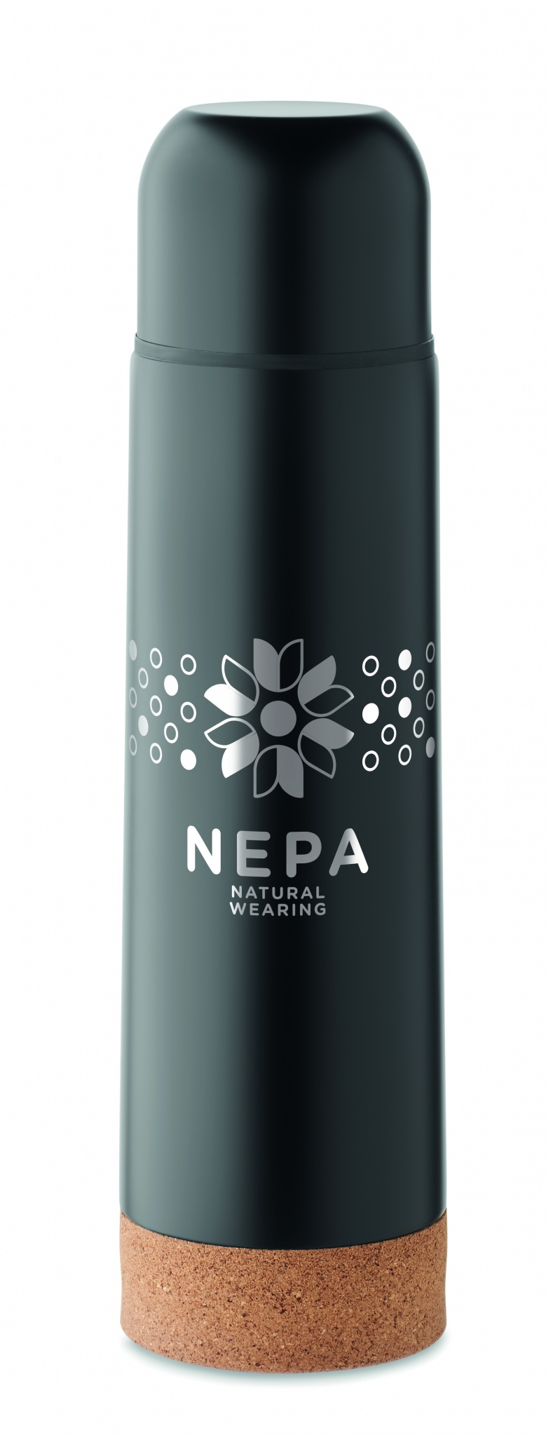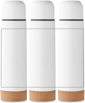 Kaksiseinäinen tyhjiöeristetty pullo kierrätetystä ruostumattomasta teräksestä, pullossa on korkkipohja. Vuotamaton. Tilavuus: 500 ml. (90 % kierrätettyä ruostumatonta ja 10 % ruostumatonta terästä).
