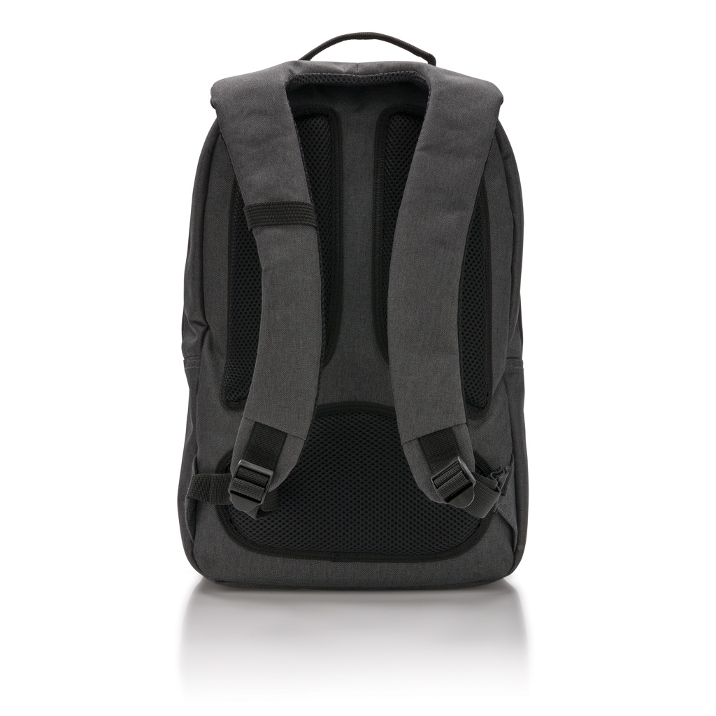 Täydellinen työhön ja vapaa-aikaan. Tämä reppu 600D polyesterista tarjoaa tyylikkään tavan kuljettaa tavaroita. Osasto 15” kannettavalle ja toinen osasto tabletille. Säädettävät olkahihnat ja pehmustettu takapaneeli. Tilava etuosasto kengille tai urheiluvaatteille.