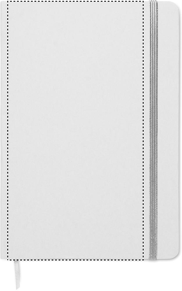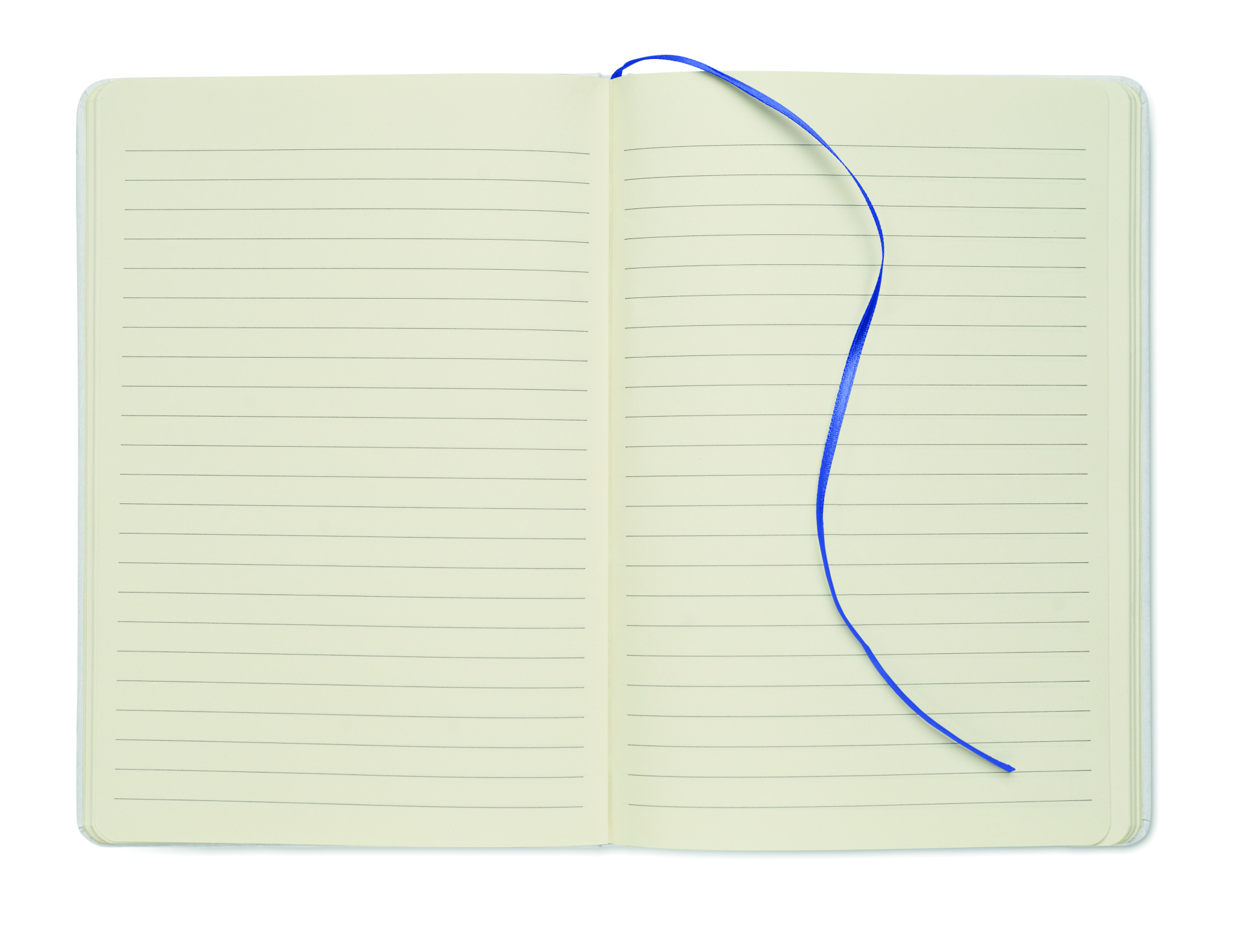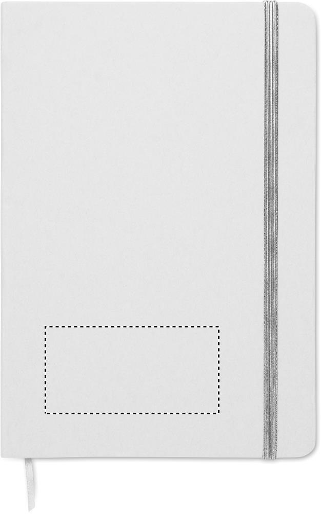 A5-kokoinen muistikirja kovalla kierrätetyllä kartongilla. Valkoinen kansi. Casebound. 160 rivillistä kierrätyspaperisivua (80 arkkia). Joustava sulkuhihna, kirjanmerkki nauha, joka sopii yhteen paljastetun värin kanssa. Laserkaiverruksen jälkeen väri paljastuu.