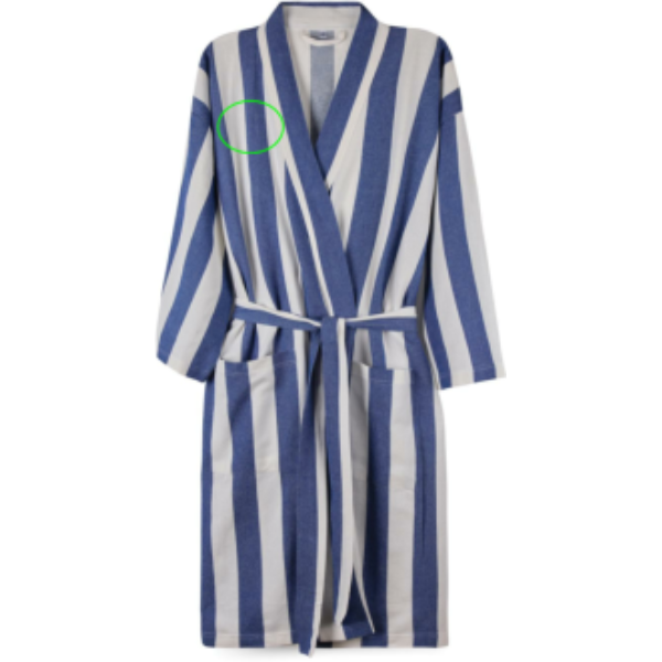 Ota tämä pehmoinen ja mukava hamam-kylpytakki mukaan rannalle tai nauti sen mukavuudesta kotona. Se on valmistettu kevyestä ja ilmavasta, 200 g/m2:n sekoitemateriaalista, jossa yhdistyvät puuvillan mukavuus ja nopeasti kuivuvan polyesterin edut. Tyyliltään klassisessa kylpytakissa on kaksivärinen raitakuviointi, siisti kaulus, etutaskut, 3/4-pituiset hihat ja vyö vyötäisillä täydellisen istuvuuden varmistamiseksi. GRS-sertifiointi: GRS (Global Recycled Standard) -sertifikaatti takaa, että koko kierrätysmateriaalien toimitusketju on sertifioitu. Tuotteen kokonaiskierrätysmateriaalin osuus perustuu tuotteen kokonaispainoon. Tämä tuote sisältää 69 % GRS-sertifioitua kierrätettyä puuvillaa ja 29 % GRS-sertifioitua kierrätettyä polyesteriä.