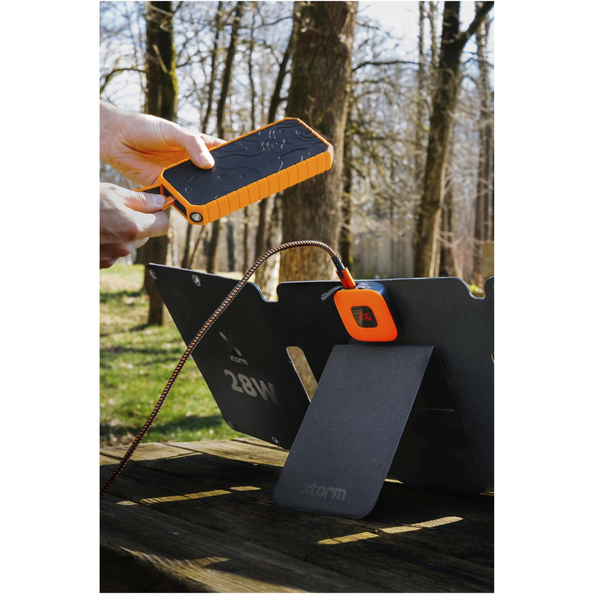 Älypuhelimen, tabletin tai varavirtalähteen voi liittää 28 W:n taitettavaan Xtorm SolarBooster -aurinkopaneeliin helposti USB-A- tai USB-C-liitännän kautta. Olitpa sitten telttaretkellä, rannalla tai festivaaleilla, SolarBooster antaa mobiililaitteillesi uutta energiaa auringosta.