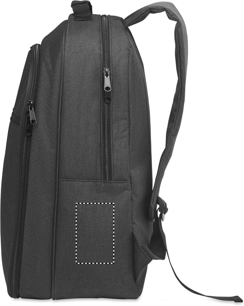 300D RPET aušinimo kuprinė su 15 colių nešiojamojo kompiuterio skyriumi. Priekinė kišenė su užtrauktuku ir vienas šoninis tinklinis skyrius.
