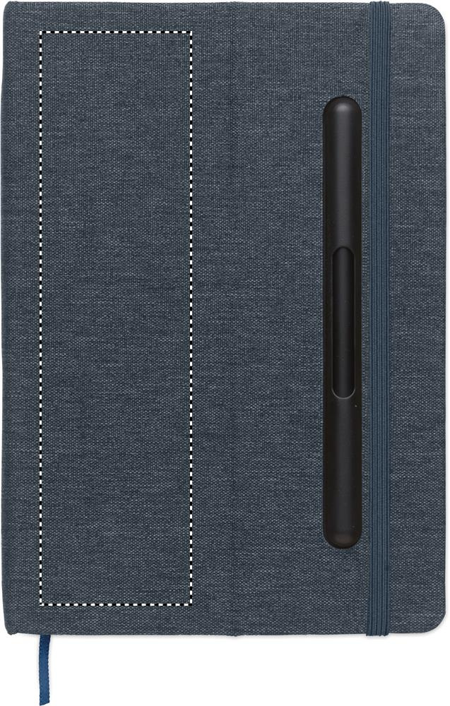 A5 formato užrašų knygelė su kietu RPET viršeliu ir telefono laikikliu. Integruotas 2 viename rašalinis ir įprastas tušinukas iš ABS. Įrištas dėklu. 192 perdirbto popieriaus linijuoti puslapiai (96 lapai). Derantis dirželis ir skirtukas.
