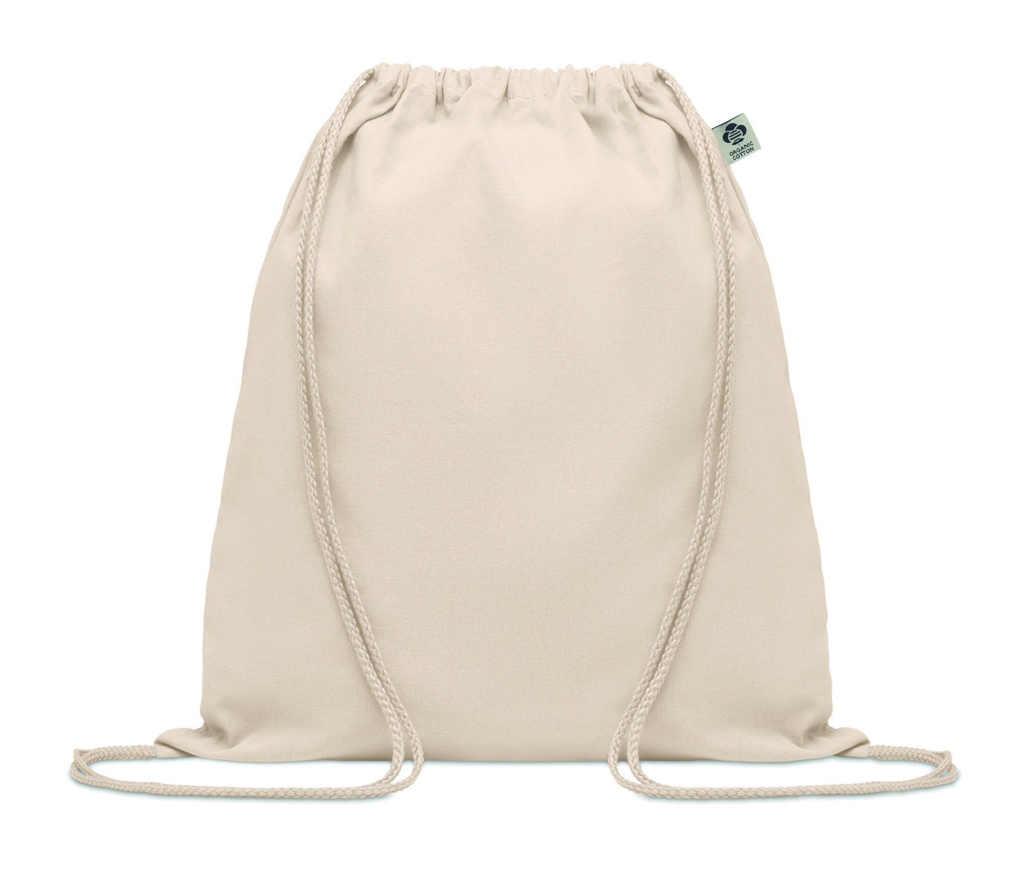 Ekologiškos medvilnės maišelis su raišteliu, Smėlio spalvos