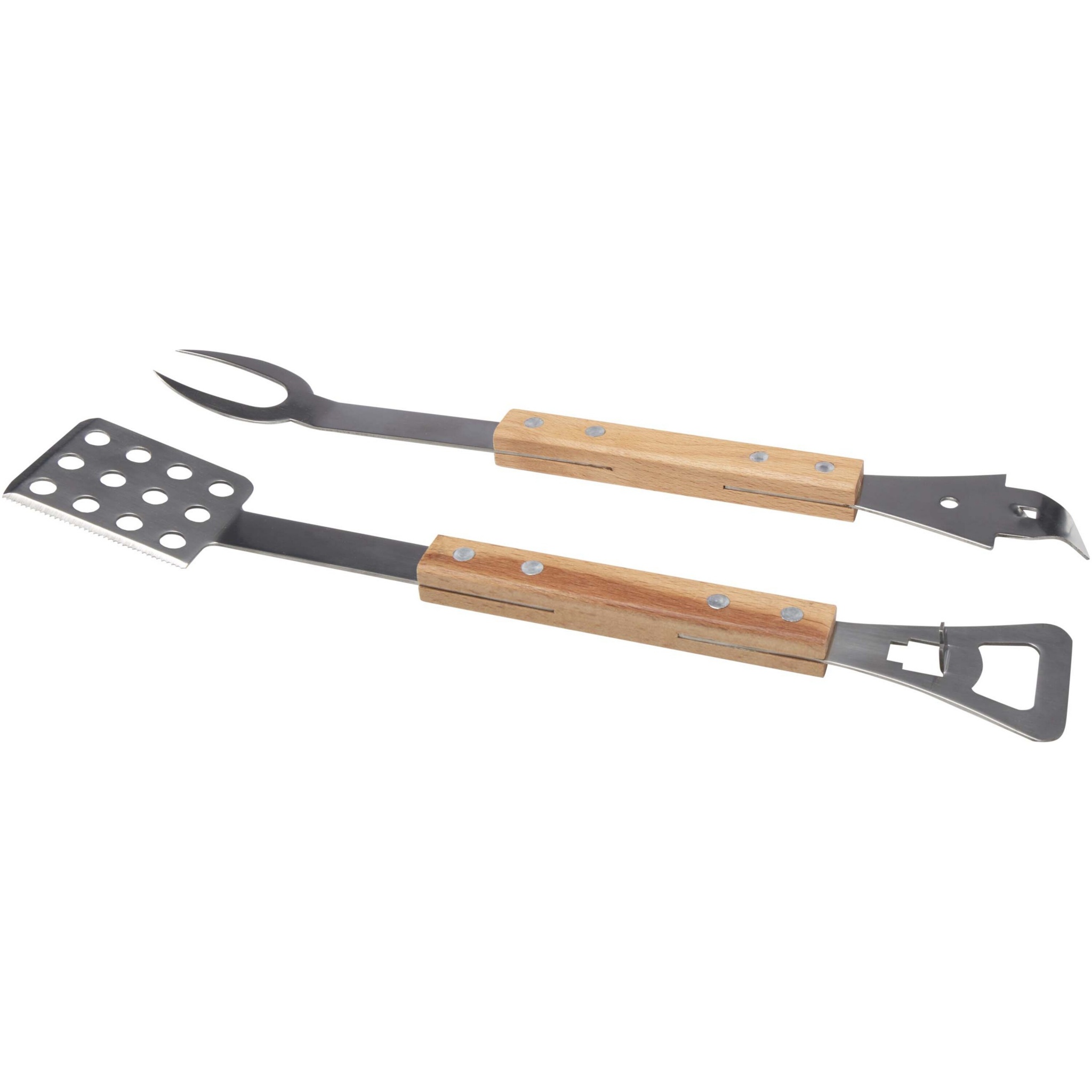 Šiame patogiame 4-in-1 kepsninės įrankių rinkinyje yra mentelė, šakutė, skardinių atidarytuvas ir butelių atidarytuvas – viskas pagaminta iš ąžuolo ir RCS sertifikuoto nerūdijančio plieno. Dėl šio įrankio patogumo ir patogumo jis yra puiki dovana bet kuriam BBQ entuziastui.