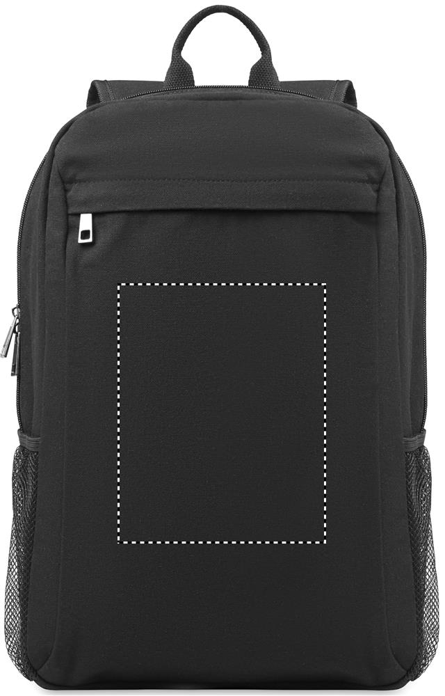 15 collu klēpjdatora mugursoma no 340 gr/m² mazgāta audekla. Polsterētas muguras un plecu siksnas. Muguras ratiņu siksna.