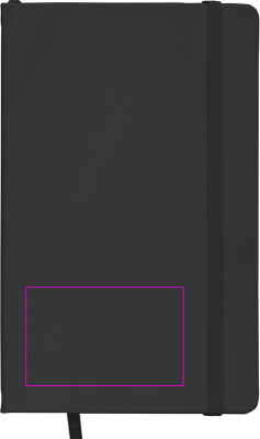 DIN A5 piezīmju grāmatiņa samtainā PU vāciņā ar 160 neitrālām lapām. Mēs uzdrukājam jūsu logotipu uz vāka.