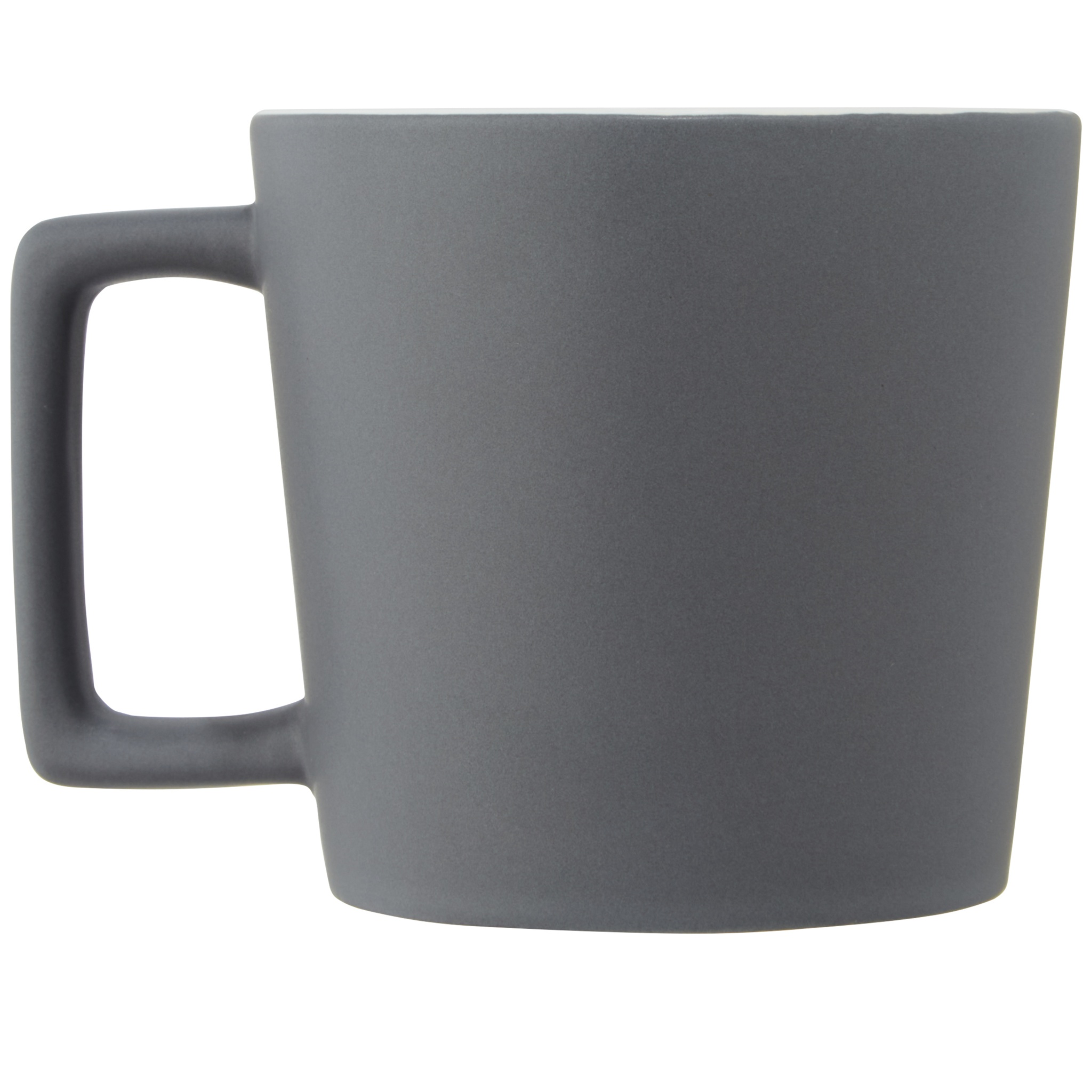 Keramikas krūze ar modernu dizainu un matētu apdari. Tilpums ir 370 ml. Var mazgāt trauku mazgājamā mašīnā visām dekorēšanas metodēm. Prezentēts pārstrādāta kartona dāvanu kastītē.