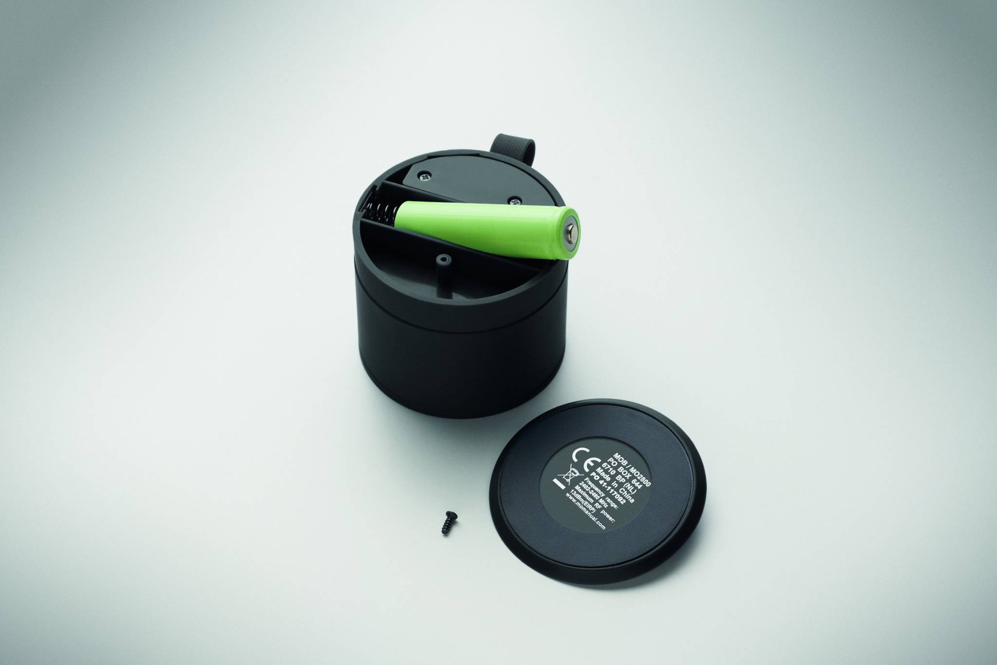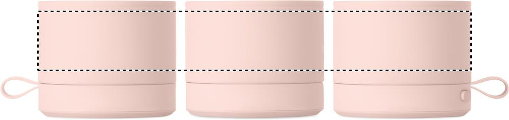 Wireless 5.1 speaker with metal body and rubber finish. Features 3W mono sound. Includes rechargeable and replaceable 500mAh battery. Compact and modern design.