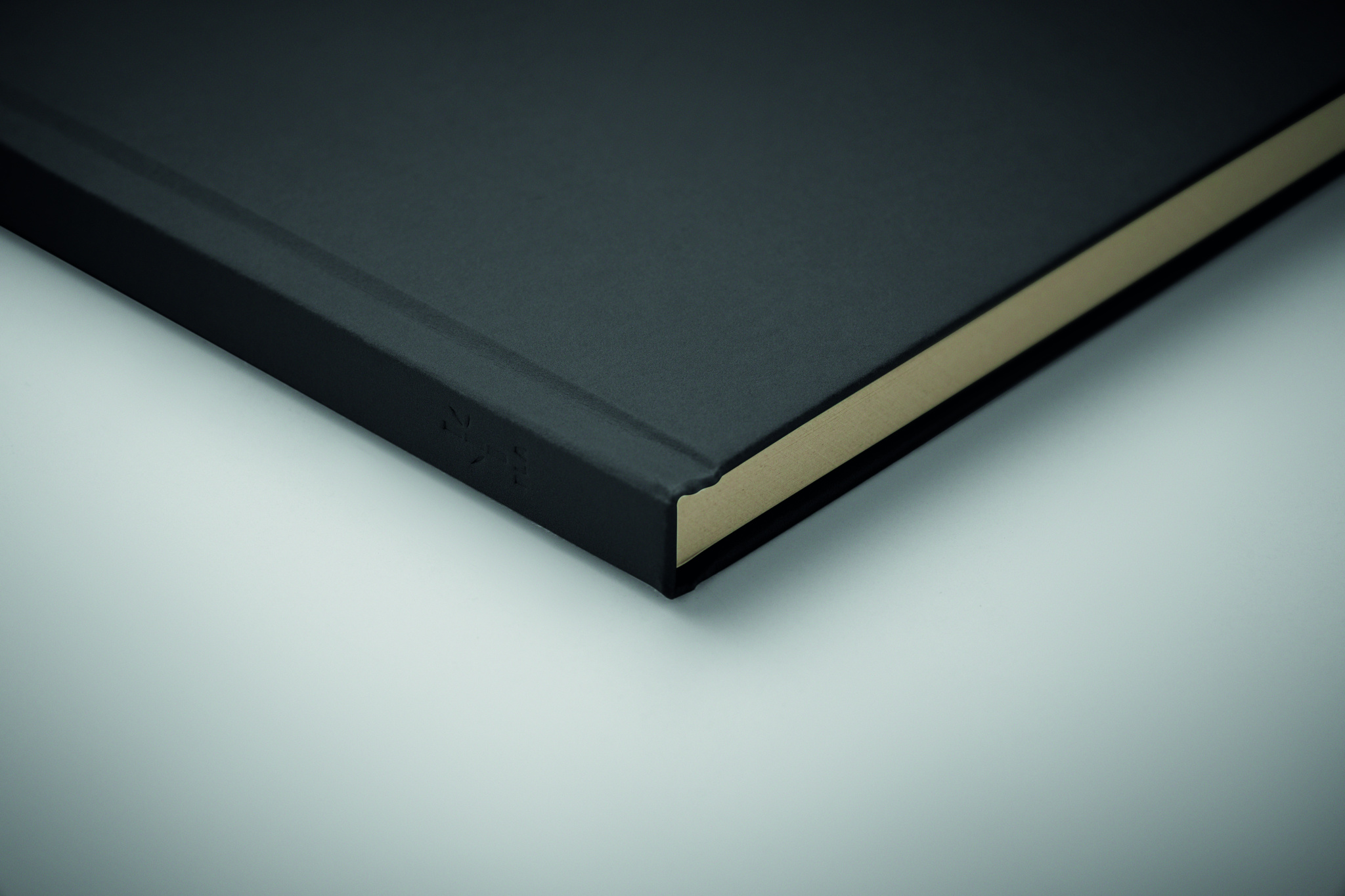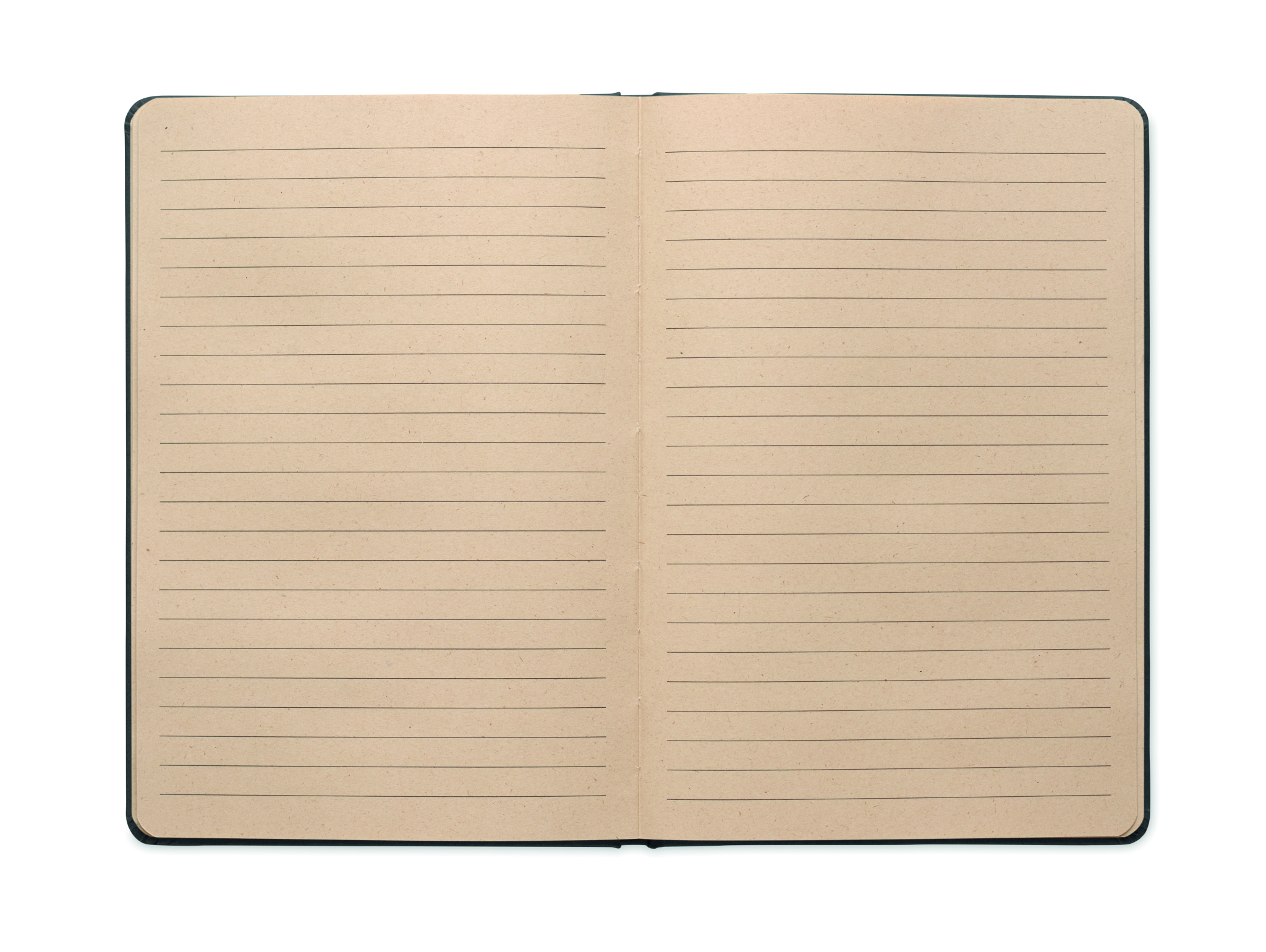 A5 notebook with hard cover and 160 lined paper pages (80 sheets) in PLA sugarcane (65% Sugarcane fibre/35% paper). Casebound.
