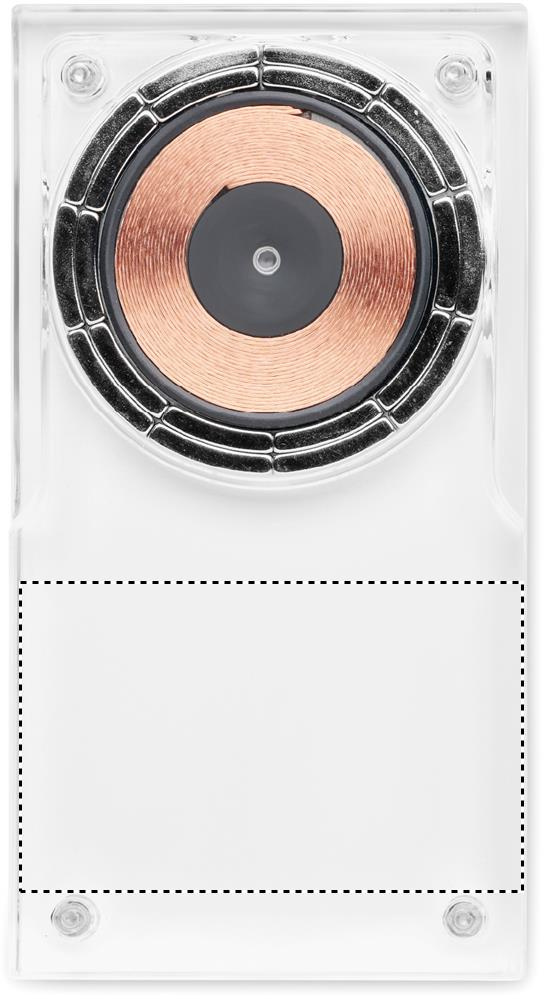 Wireless charger (15W) in acrylic with phone stand. When connected to a power source, it will charge your mobile device. Output: 9V/1.67A (15W) for quick charging.