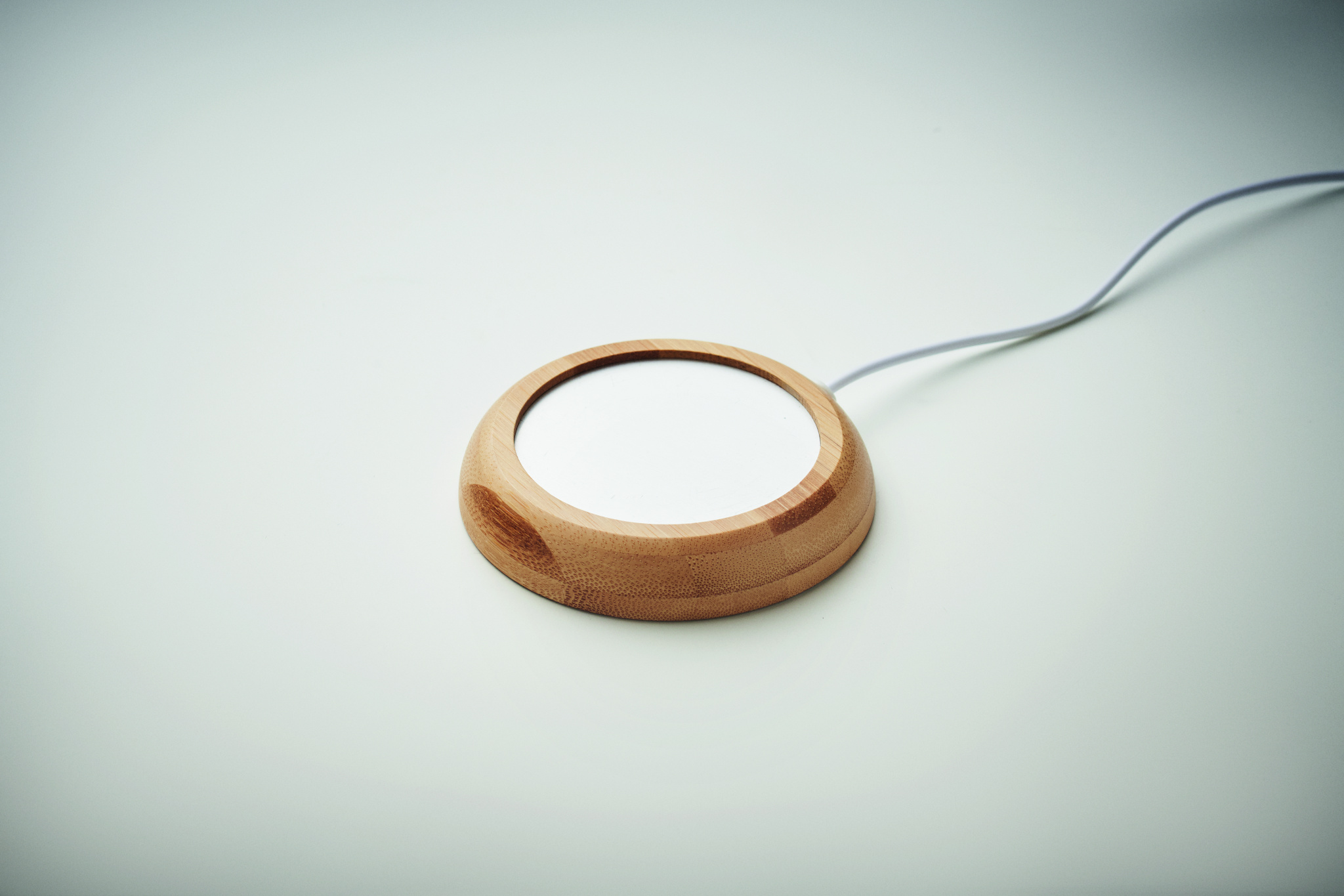 Mug warmer device in bamboo. Keep drinks warm to a max of 45ºC. It has a USB connection cable.
