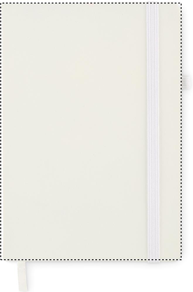 Блокнот формата A5 с обложкой из переработанного полиуретана. Переплет. 192 линованные страницы из переработанной бумаги (96 листов). Эластичный ремешок и крепление для маркеров и ручек.