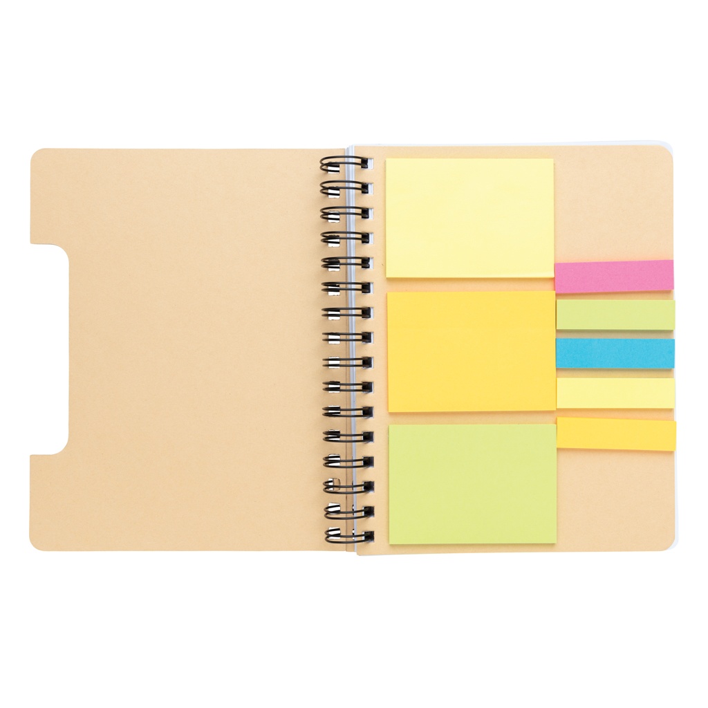 С этим красивым блокнотом из крафт-бумаги вы всегда сможете иметь под рукой заметку для быстрых заметок и напоминаний. Яркие цвета стикеров сделают ваши заметки заметными. Блокнот из крафт-бумаги поставляется с 2 размерами стикеров по 30 листов каждый. Блокнот на спиральном кольце вмещает 100 листов/200 страниц линованной переработанной бумаги плотностью 80 г/м².
