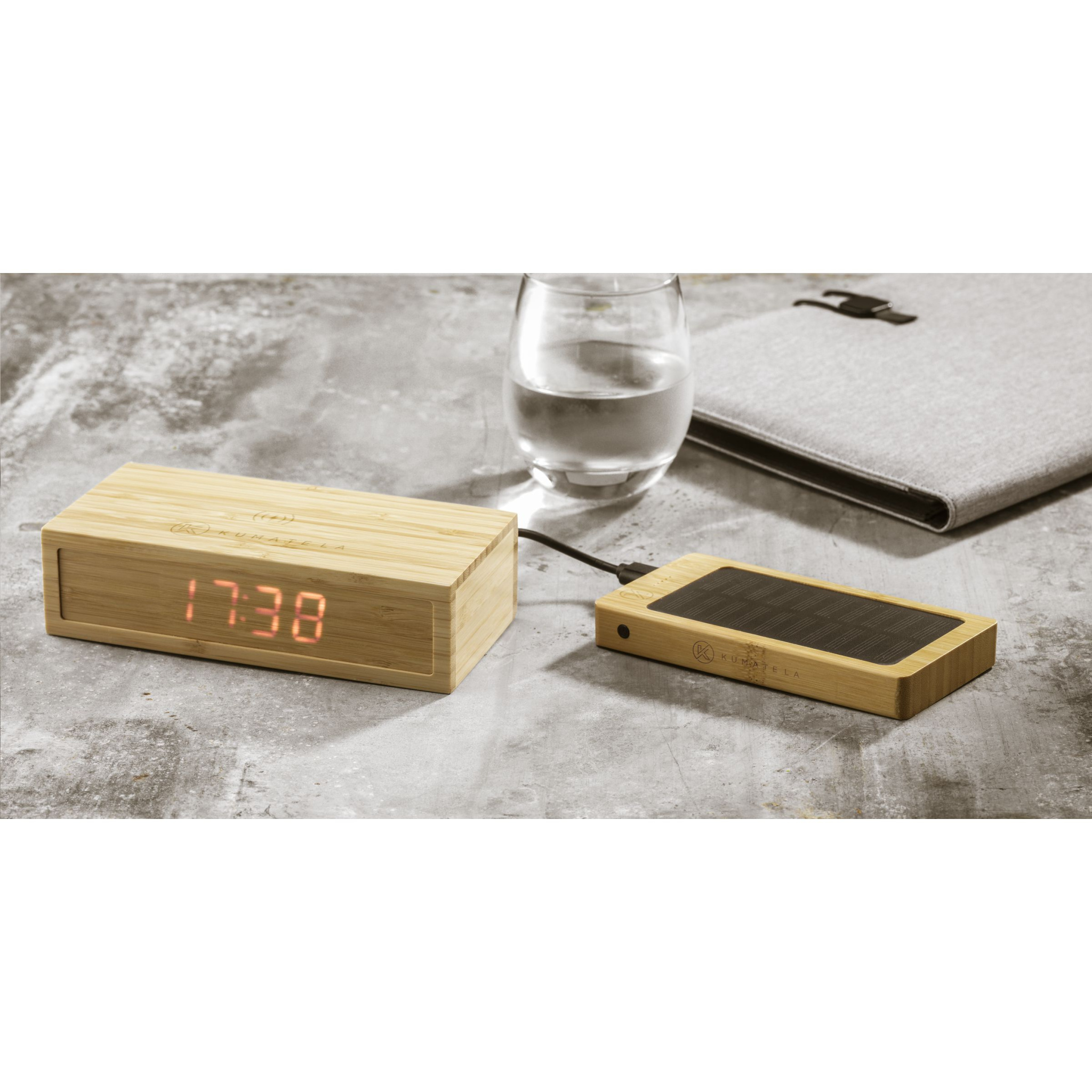 Беспроводное зарядное устройство мощностью 10 Вт и будильник с цифровым 24-часовым дисплеем с корпусом, полностью изготовленным из бамбука. Помимо возможности беспроводной зарядки, этот продукт также оснащен портом USB для зарядки устройств через кабель. Совместим со всеми устройствами QI, такими как последнее поколение Android, iPhone 8 и выше. Вход 9 В/2 А: беспроводной выход 5 В/2 А-10 Вт: 1 выход USB 5 В/2 А. Включает кабель без ПВХ (TPE) с разъемом USB-C, руководство пользователя и батарейки. Каждый предмет поставляется в индивидуальной коричневой картонной коробке.