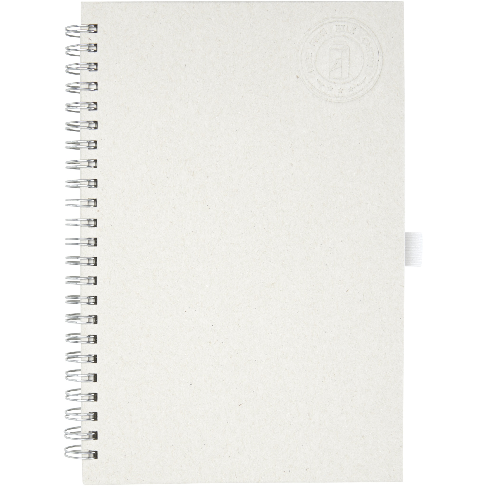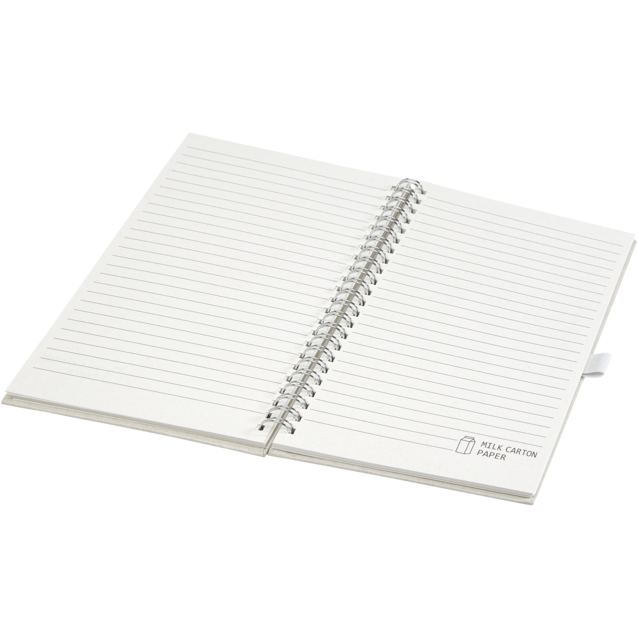 Блокнот на спирали формата A5 для заметок с 70 линованными листами плотностью 80 г/м², изготовленный из переработанных картонных коробок из-под молока (до 70%). Картонные коробки из-под молока собираются, сортируются, перерабатываются и превращаются в бумагу, таким образом действительно превращая мусор во что-то полезное.