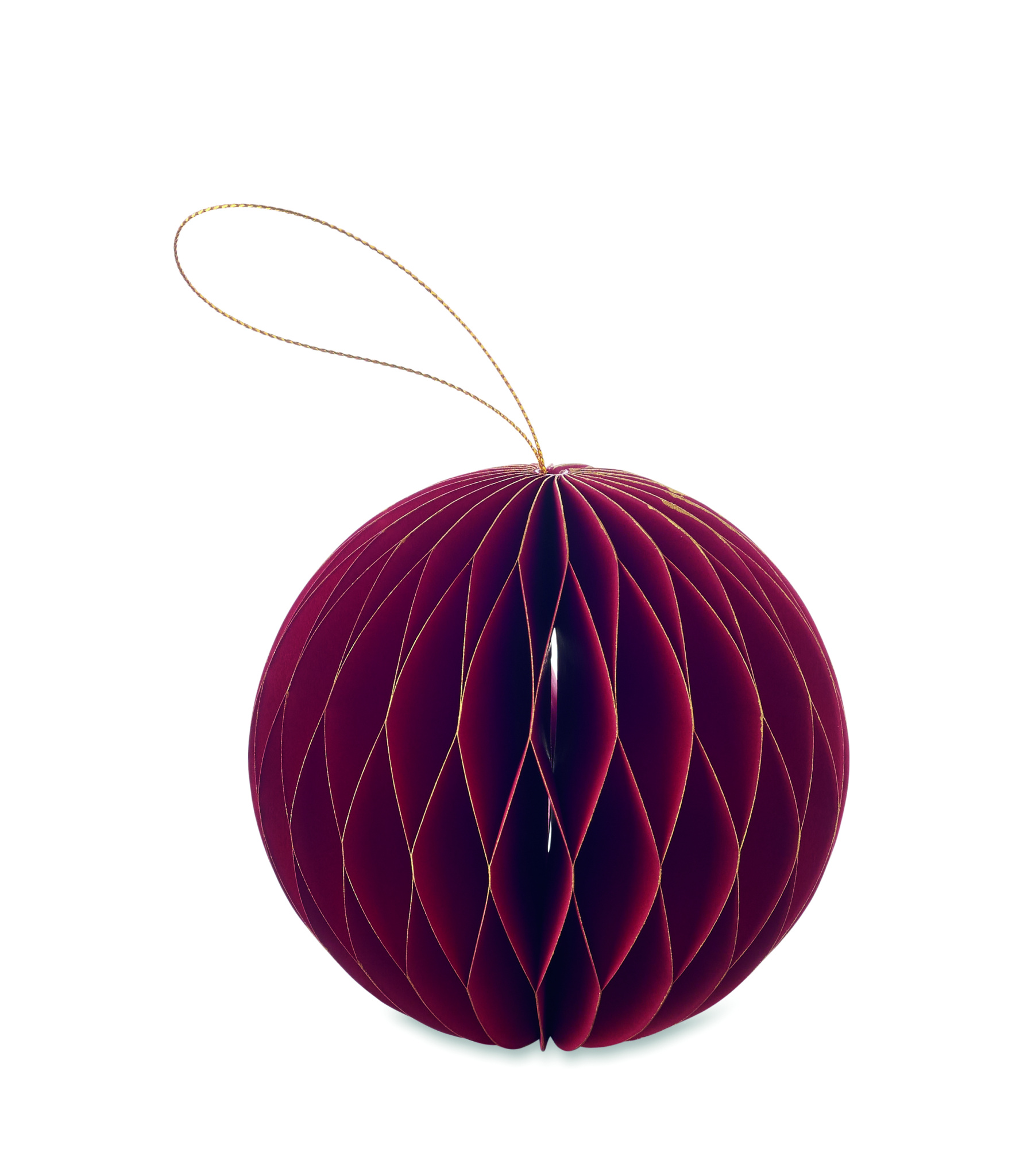 Foldable paper Christmas bauble hanger with magnet closure.