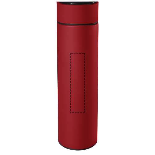 Герметично закрывающаяся бутылка из нержавеющей стали 500 мл с двойными стенками. Бутылка оснащена датчиком температуры. Благодаря системе «Touch & Light» температура напитка отображается на крышке бутылки (в градусах Цельсия). Подходит как для горячих, так и для холодных напитков. Поставляется в цилиндрической подарочной коробке из бумаги вторичной переработки. Размер: Ø 47 x 225 мм. Несъемный аккумулятор в комплекте: CR 2450 (3 В). Температура может отображаться 20 000 раз.