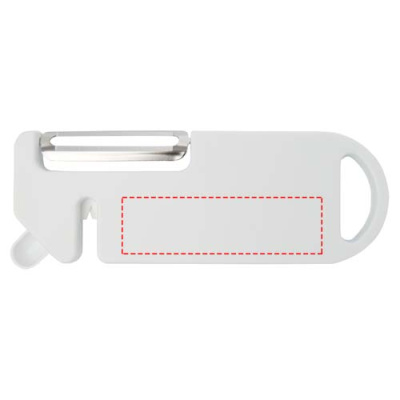 Этот многофункциональный кухонный инструмент объединяет четыре основные функции в одном компактном корпусе. Изготовленный из переработанной пластмассы, он оснащен овощечисткой, открывалкой для бутылок, точилкой для ножей и заостренным наконечником для удаления пятен с картофеля. Встроенное отверстие для подвешивания обеспечивает удобство хранения. Практичный и компактный, он станет универсальным помощником для каждого домашнего повара.