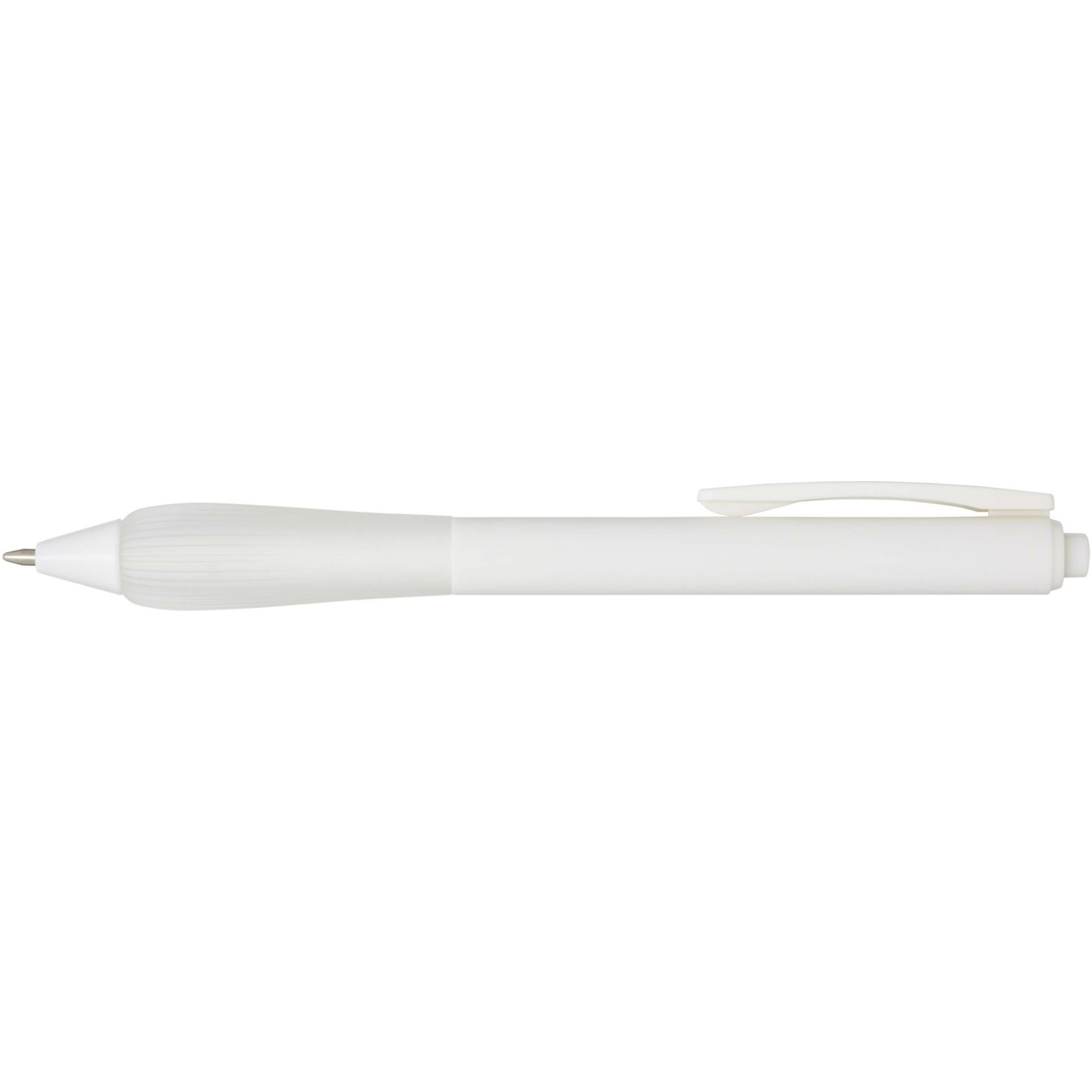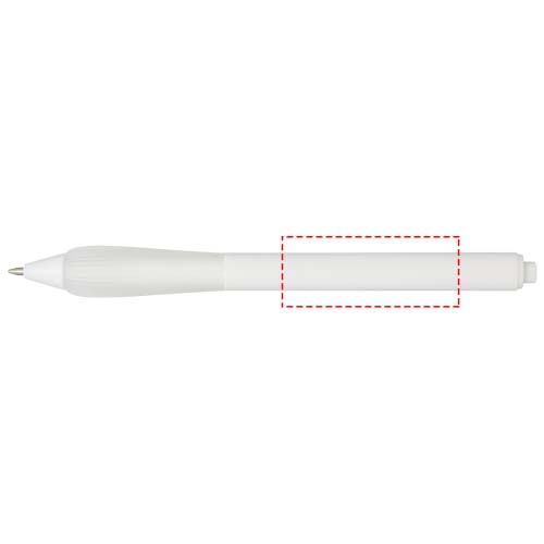 Шариковая ручка из переработанного пластика с прорезиненным корпусом и рукояткой из TPR. Цвет чернил: синий. Длина непрерывной линии: 1000 метров. Размер пера: 1,0 мм.