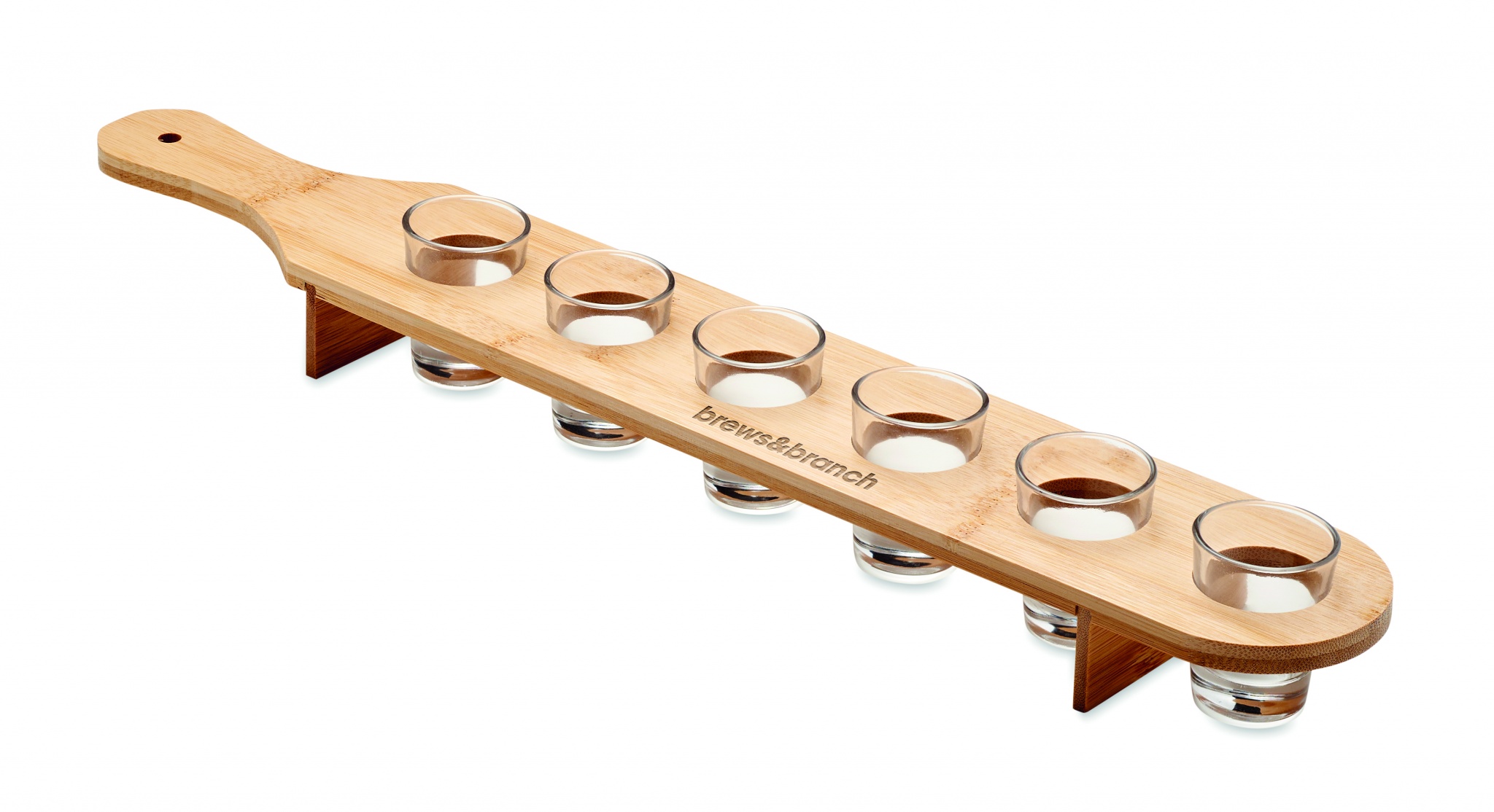 Набор из 6 рюмок на бамбуковой подставке. Емкость: 20 мл.