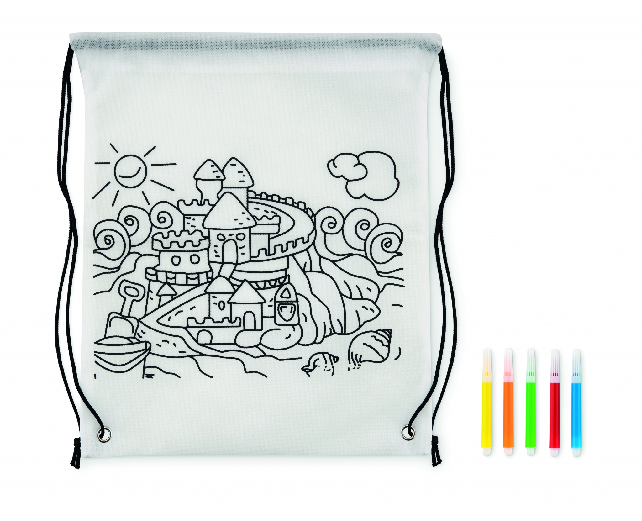 Нетканый мешок на шнурке с 5 маркерами. 80 гр / м².