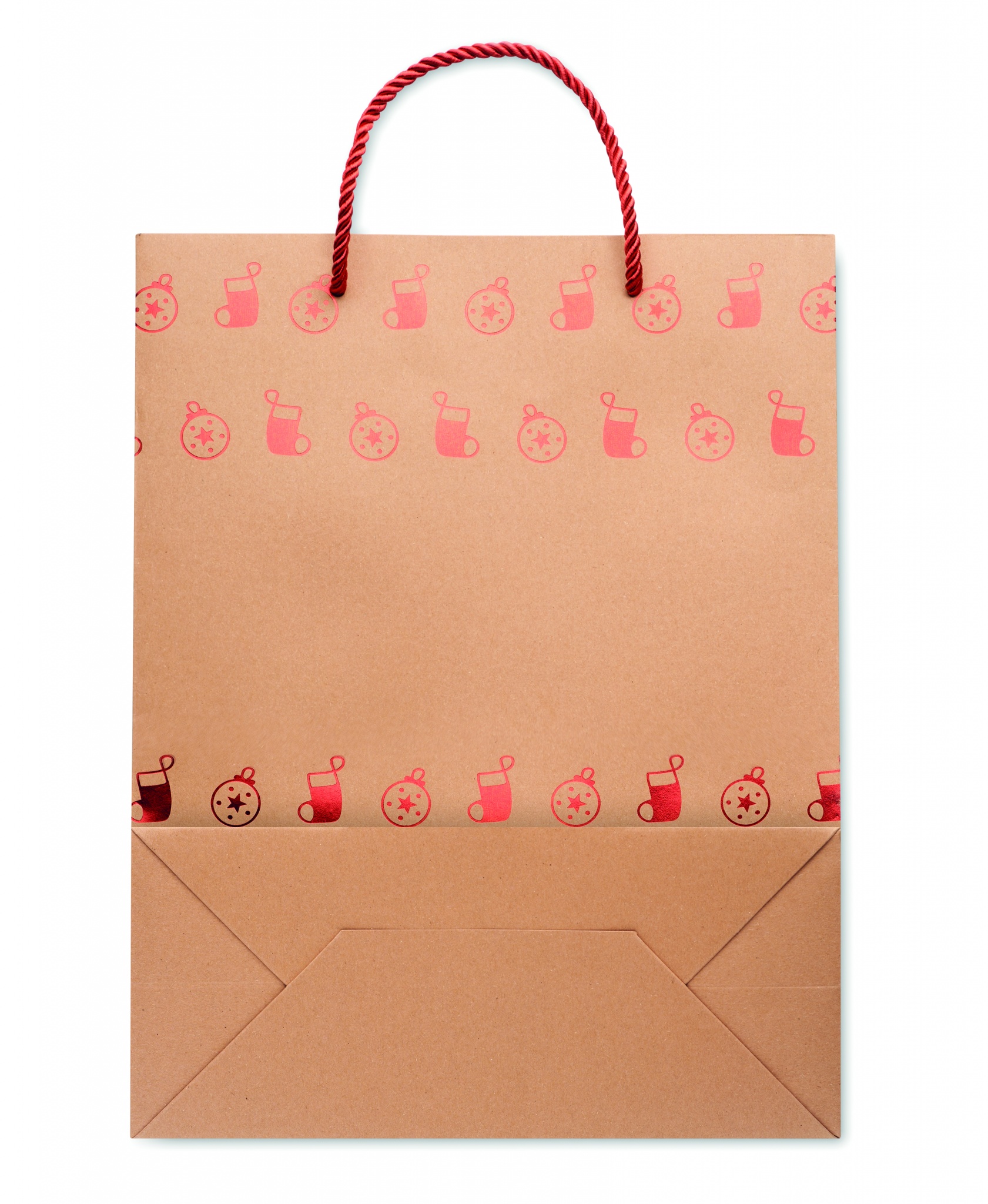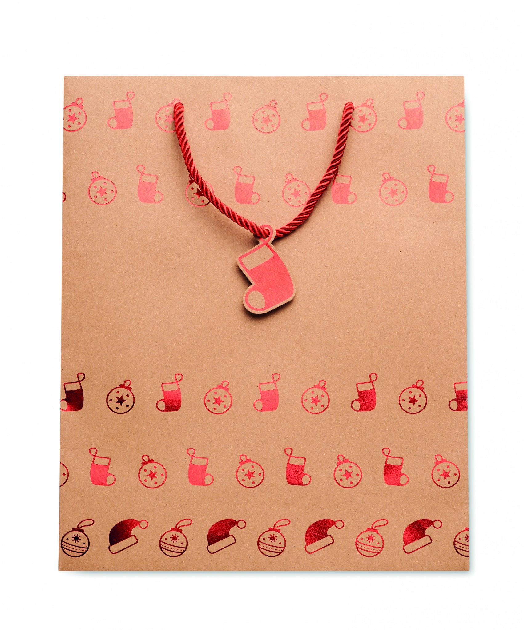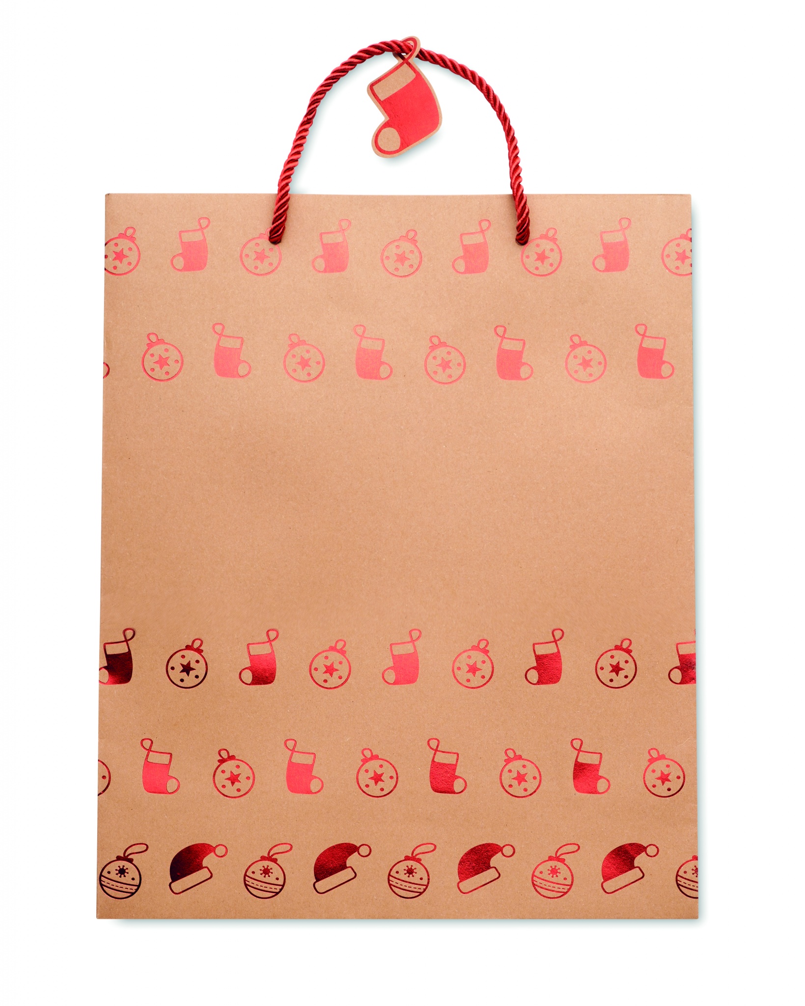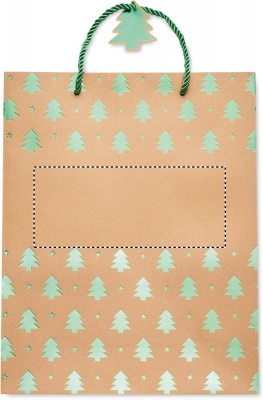 Элегантный подарочный пакет из крафт-бумаги с сезонным рисунком. Подарочная бирка в комплекте. 250 гр/м².