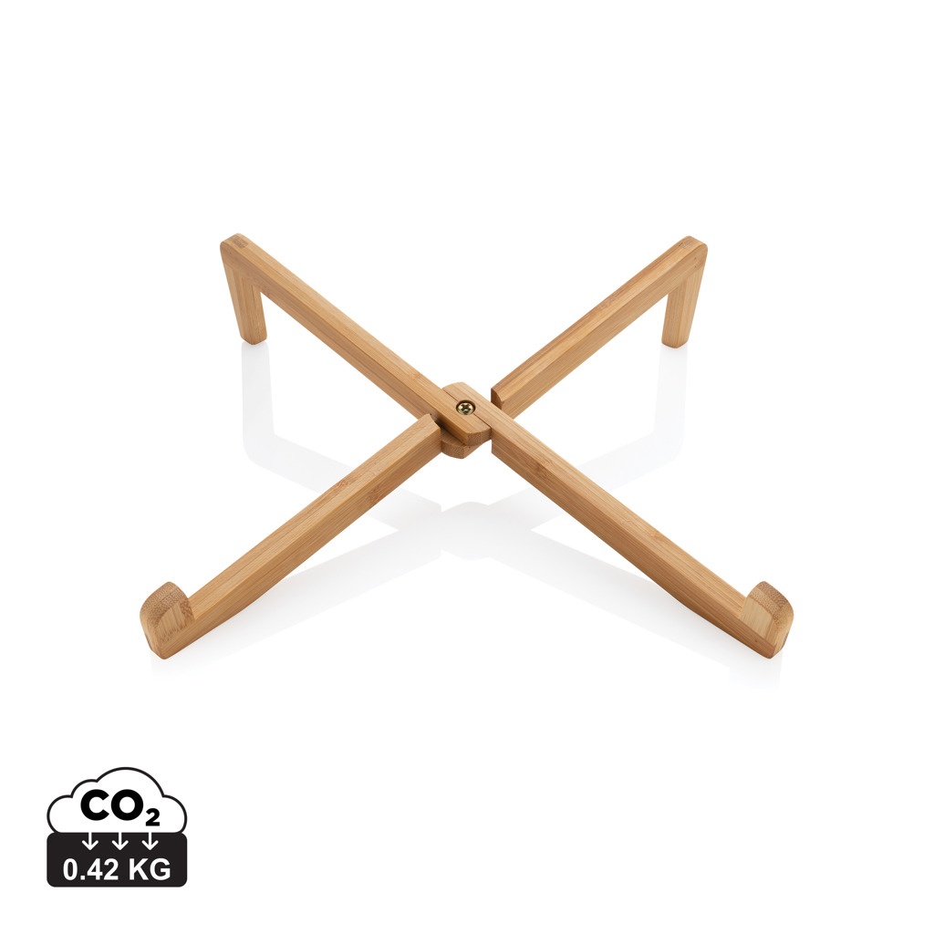 Эта портативная подставка для ноутбука — идеальный аксессуар для работы вне офиса. Работайте с комфортом в любом месте! Подняв ноутбук, воздух может эффективно циркулировать и обеспечивать идеальный уровень глаз. Складывается и легко брать с собой куда угодно в хлопковом чехле. Изготовлена из красивого бамбука. Подставка для ноутбука совместима с планшетами и ноутбуками с диагональю до 15,6 дюймов. Она подходит не только как ножки для ноутбука, но и как подставка для кулинарных книг на кухне.
