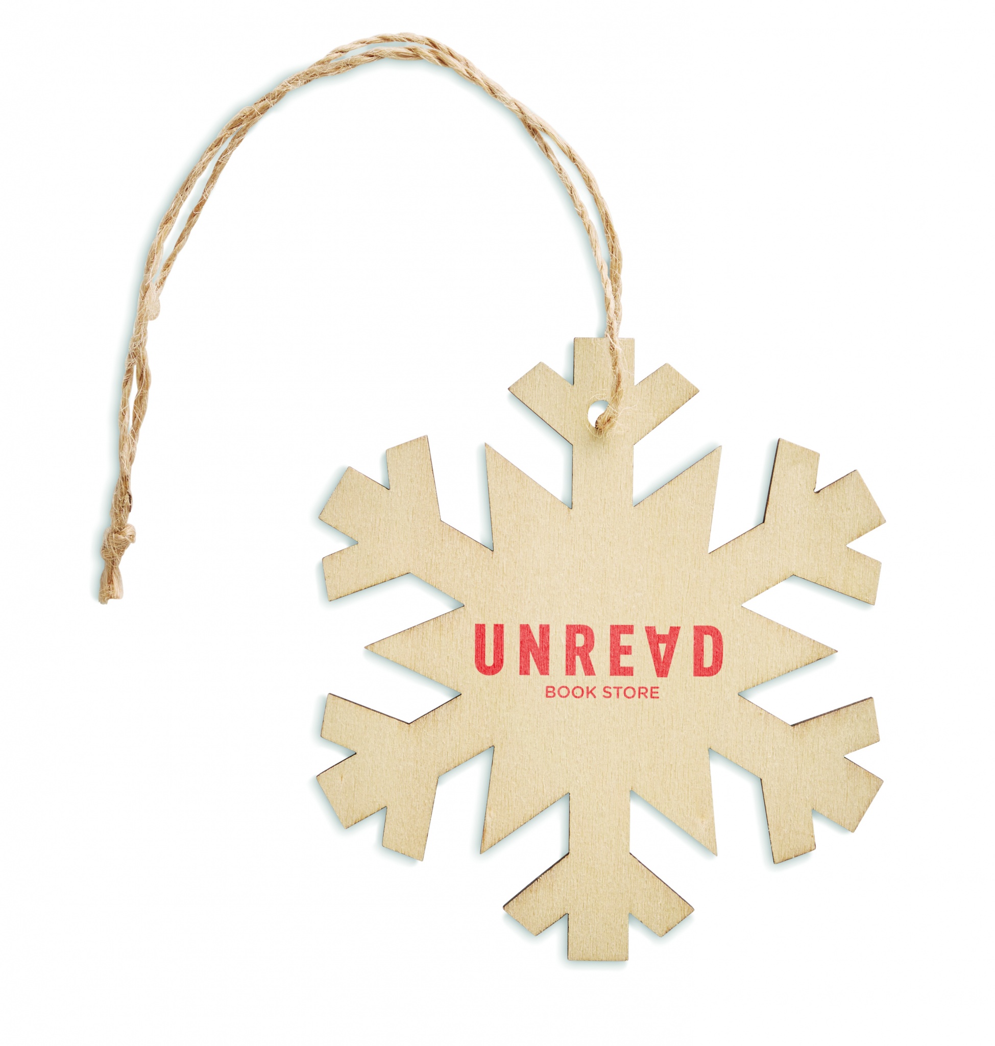 Деревянная подвеска из МДФ в форме снежинки с джутовым шнуром. Так как МДФ является натуральным материалом, у отдельных изделий могут быть небольшие различия в цвете и размере