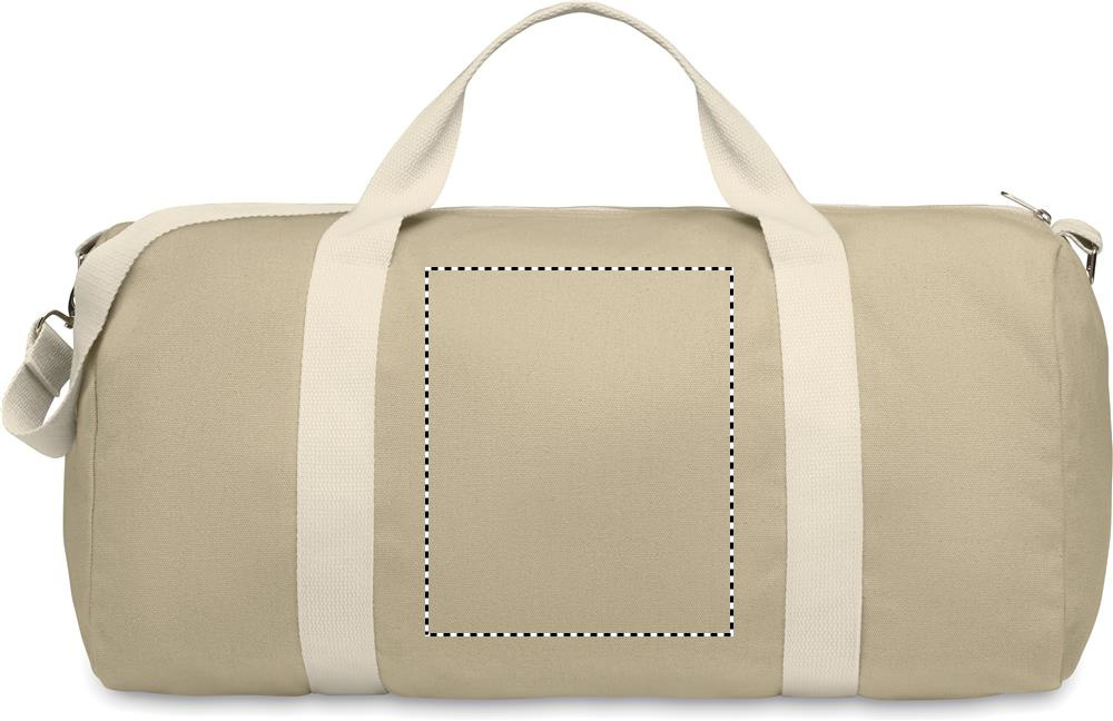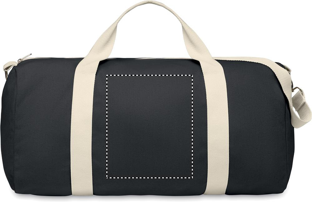 Duffle bag in recycled fabrics (60% recycled cotton, 40% recycled polyester) in 320 gr/m² with handle natural cotton webbing and an adjustable and detachable shoulder strap.