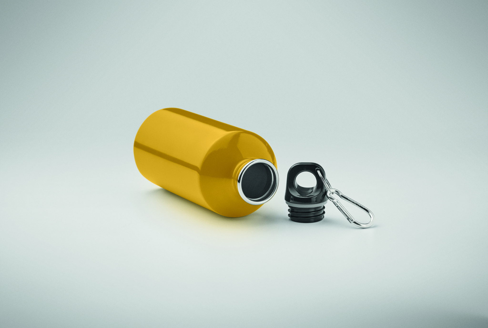 Single layer bottle in recycled stainless steel (90% recycled stainless steel and 10% stainless steel) with carabiner. 500 ml. Sublimation print available on white item only. Leak free.