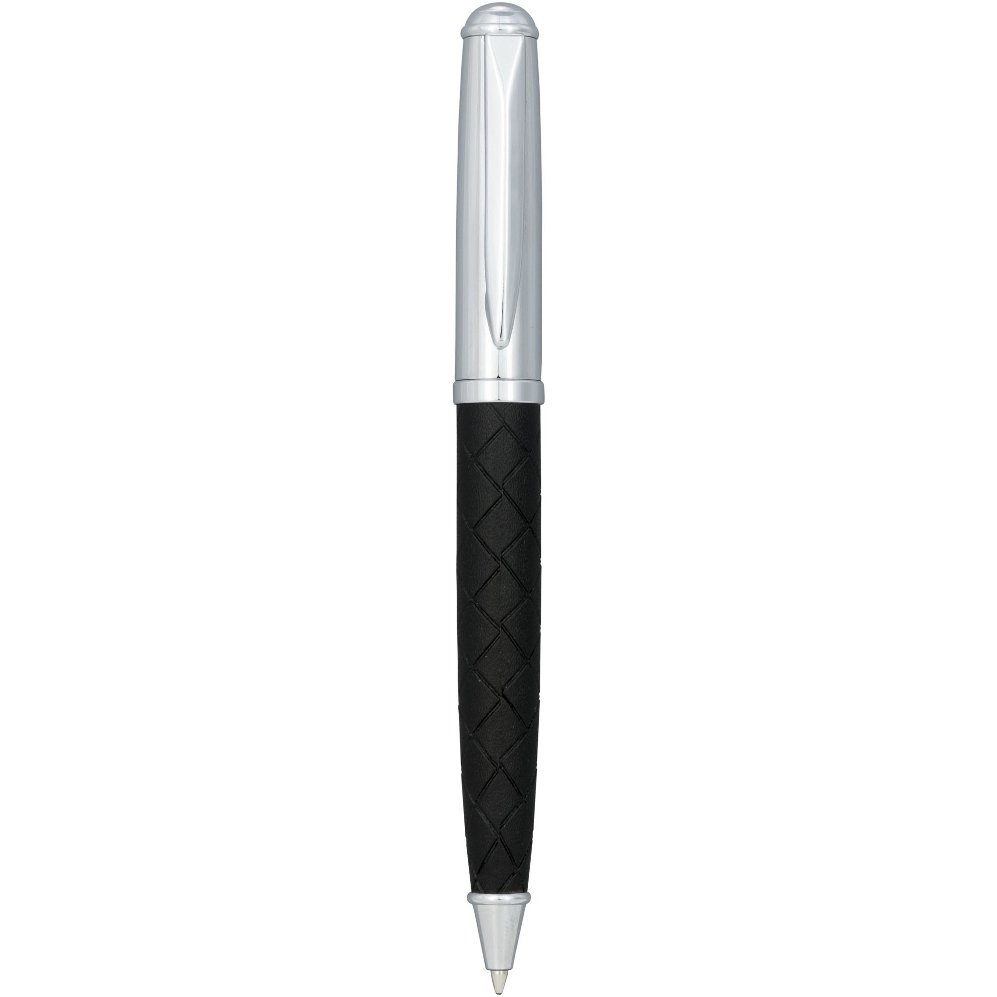 Эксклюзивная шариковая ручка с нижней частью корпуса, обернутой кожаным материалом, с поперечными линиями. В набор входит запасной черный стержень премиум-класса. Предлагается в подарочной коробке LUXE (16 x 4,5 x 2,5 см).