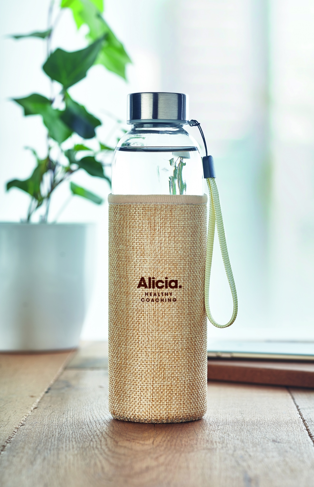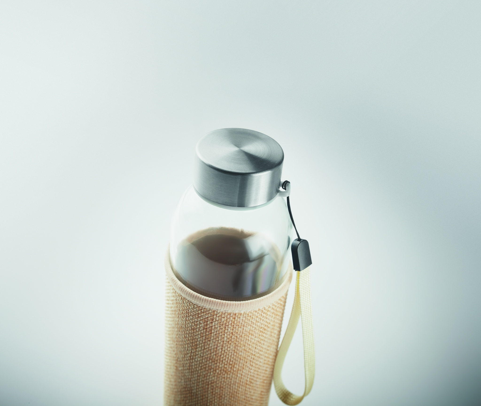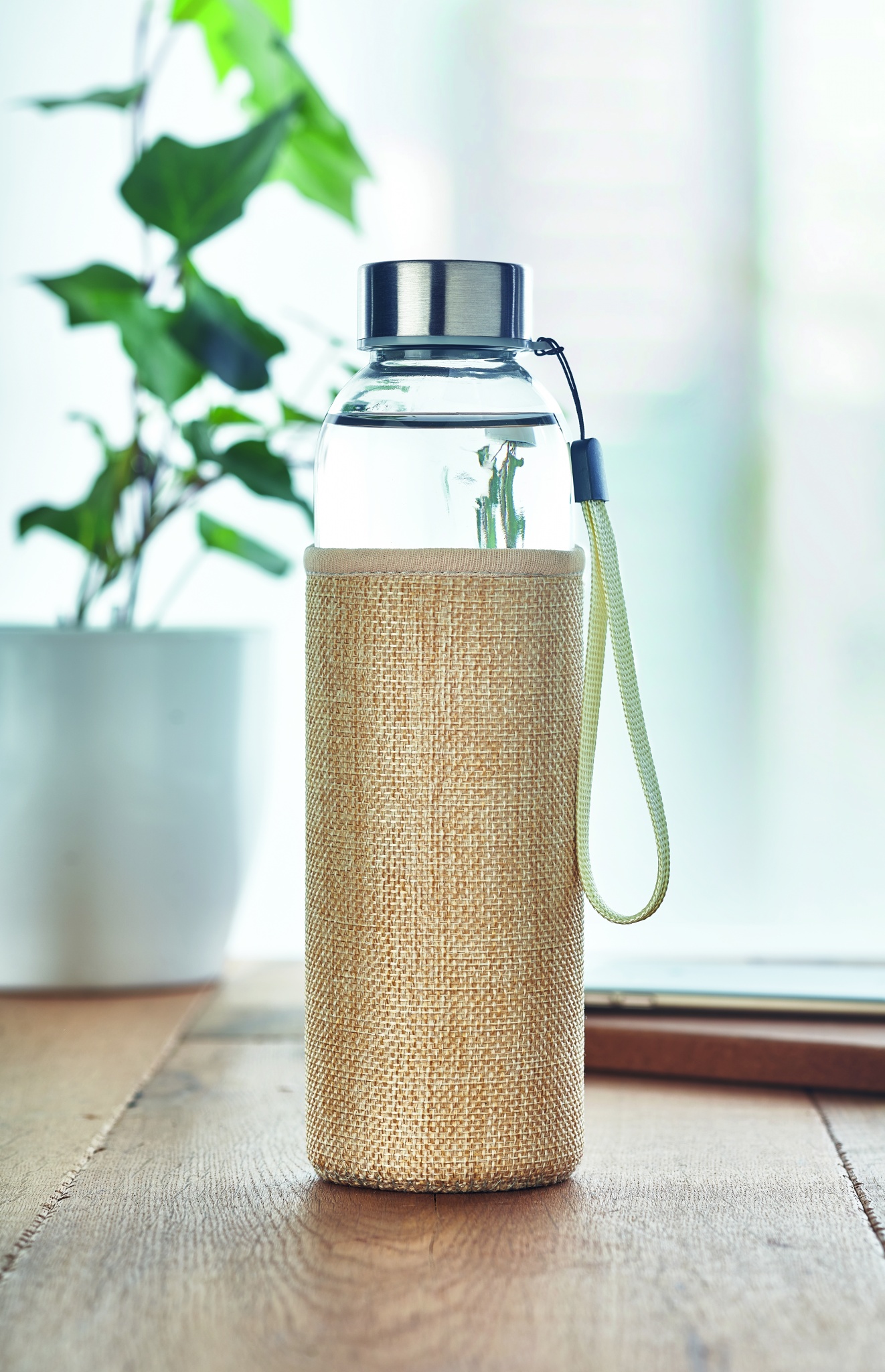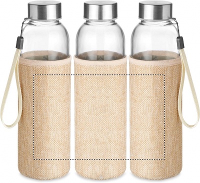 Стеклянная бутылка в чехле из неопрена и джута. Емкость: 500 мл. Не подходит для газированных напитков. Не протекает.