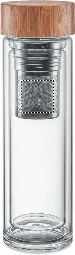 Бутылка из термостойкого стекла с бамбуковой крышкой с чайной сеточкой. Объем 400 мл. Не протекает.