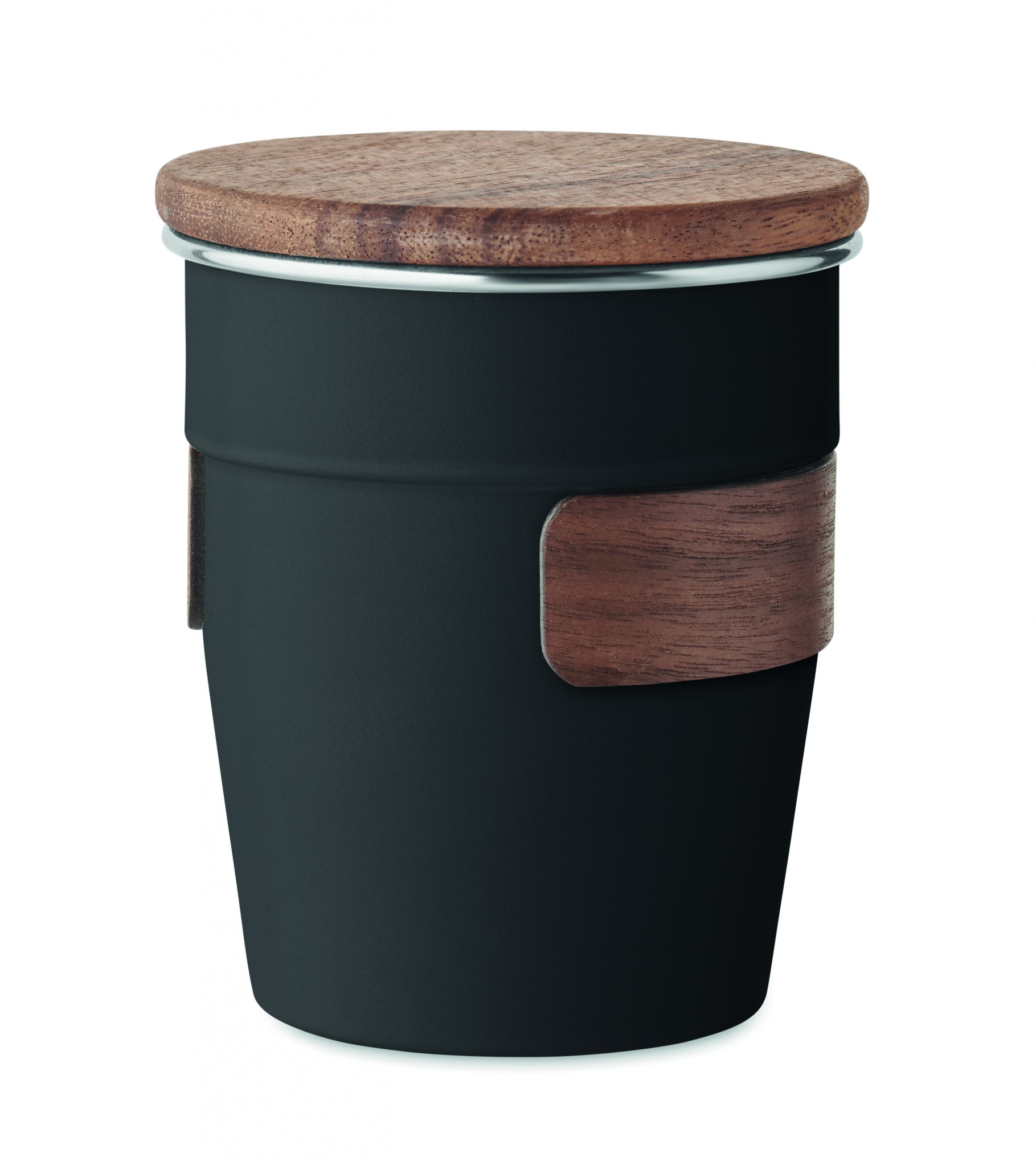 Одностенный стакан из переработанной нержавеющей стали (90%) и обычной нержавеющей стали (10%) с деревянной крышкой и манжетой. Объем: 350 мл. Возможно нагревание стенок