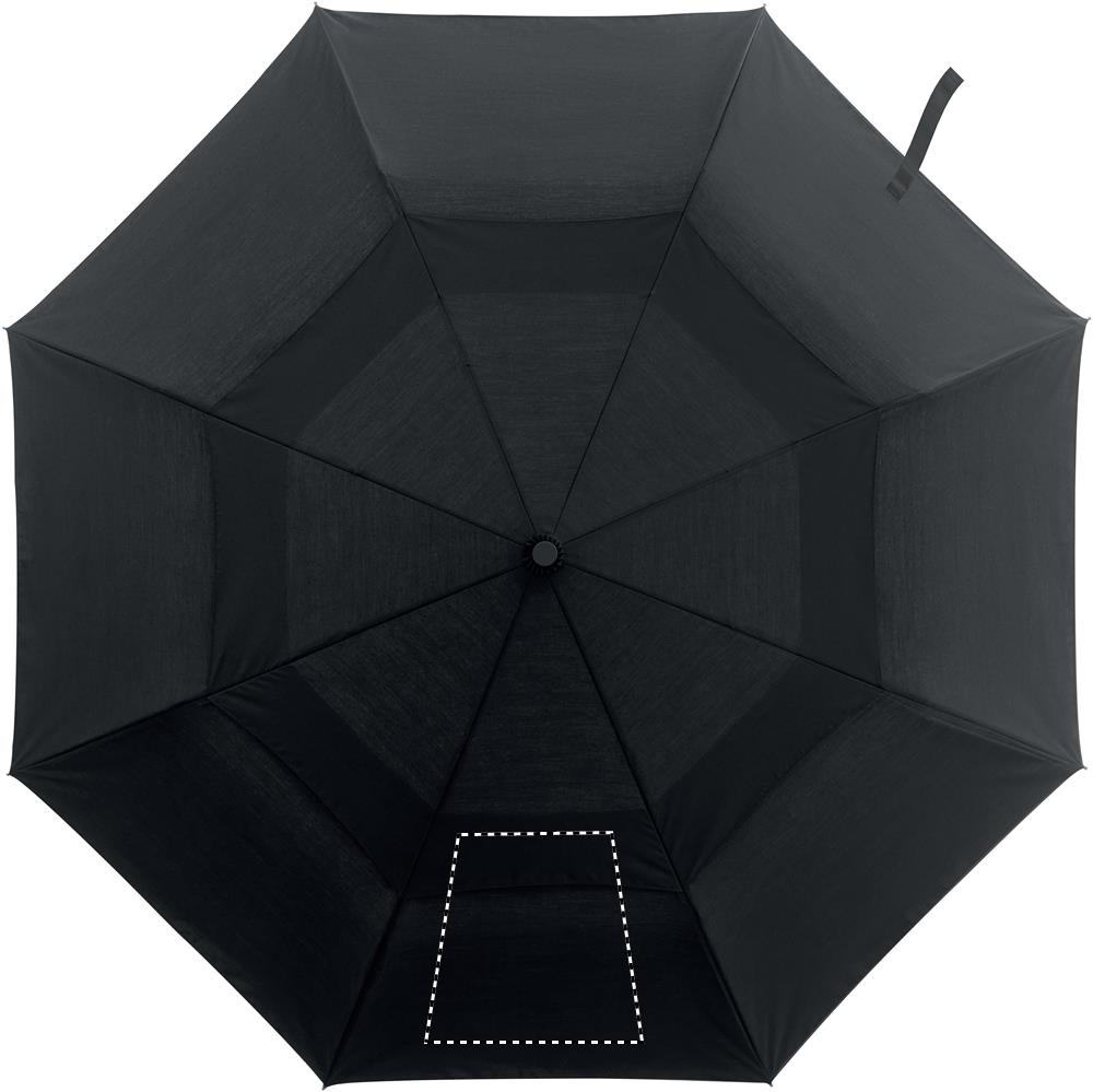 Ветроустойчивый зонт автомат 21 дюйм в 2 сложения из поликоттона 190T (70% полиэстера и 30% хлопка) с алюминиевыми стержнем и наконечниками и бамбуковой ручкой. Черные стекловолоконные спицы. В комплект входит подходящий чехол.