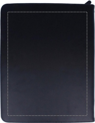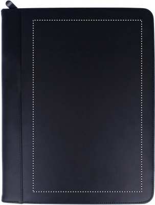 Konferensmapp med dragkedja i läder med PU material invändigt. Innerfack och pennögla. Anteckningsblock A4 med 25 blanka blad.