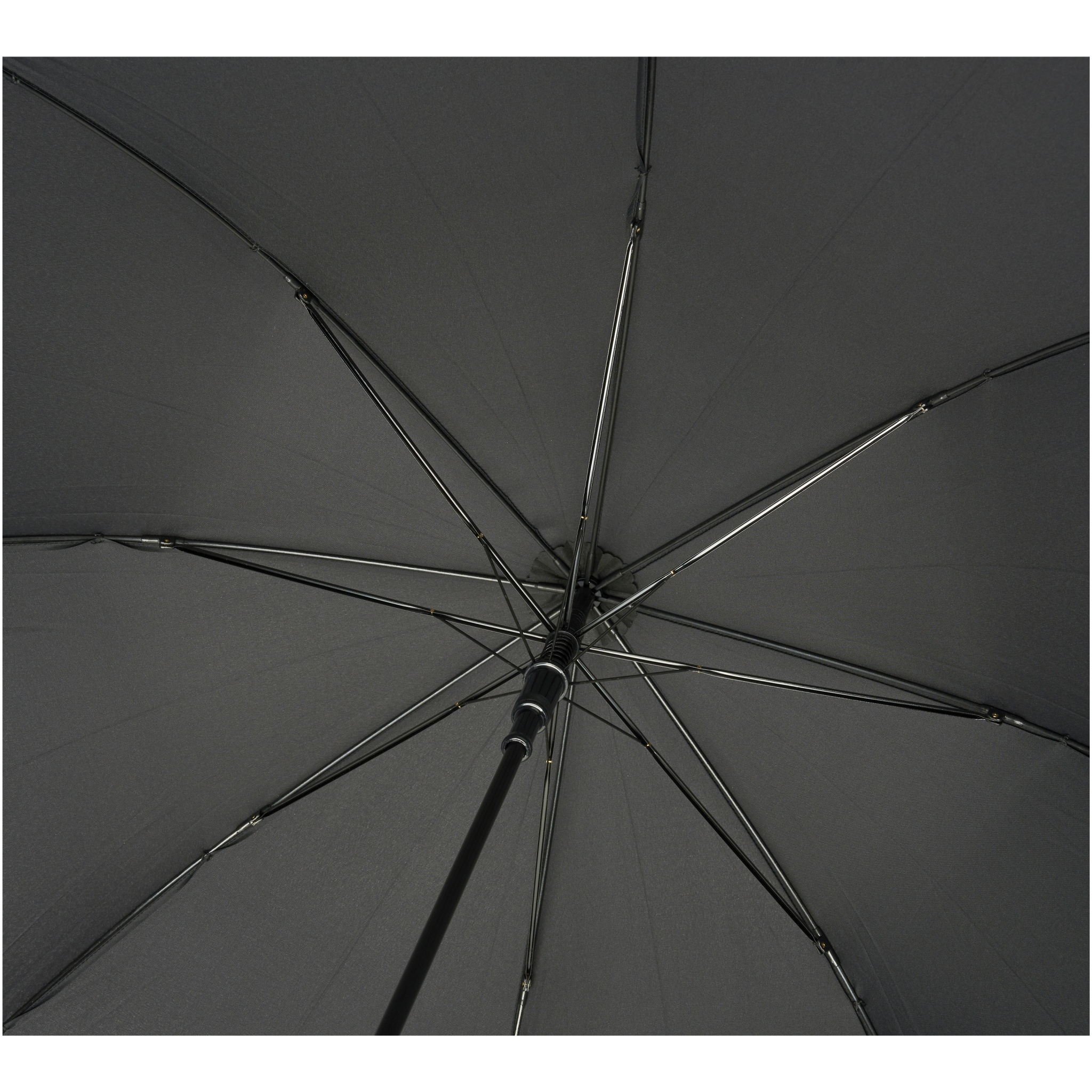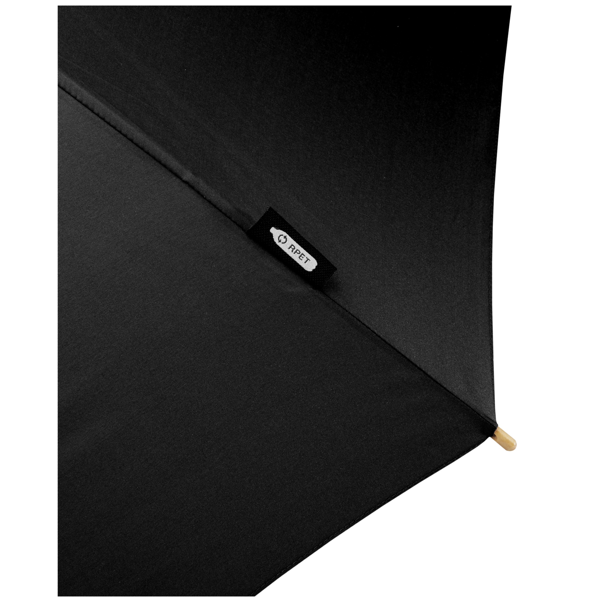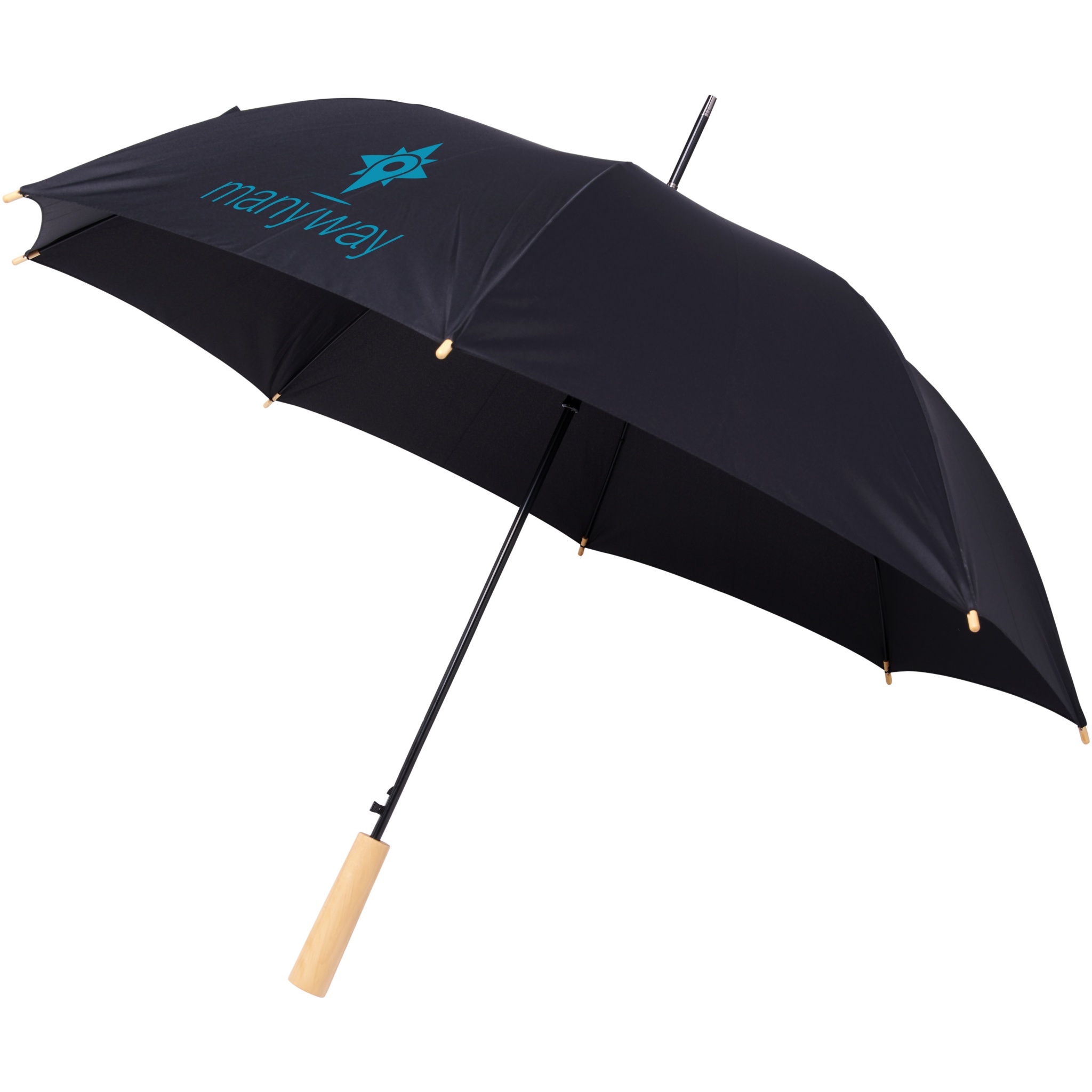 Automatiskt paraply med en kupol i pongee-polyester av återvunnen PET. Robust metallskaft med en högkvalitativ ram och glasfiberekrar som ger flexibilitet när det blåser. Tillsammans med trähandtaget, spetsarna och kupolen i pongee-polyester av återvunnen PET är det ett hållbart val. Finns i ett brett urval av moderna färger med gott om plats för dekor på varje panel.