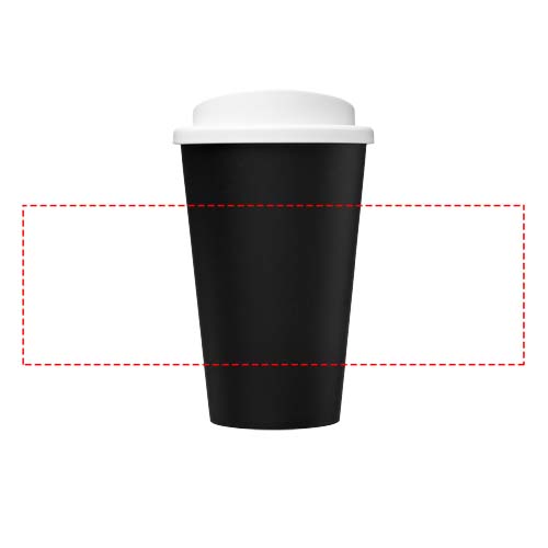 Isolerad termosmugg med dubbelvägg och skruvlock. Produkten är totalt 75% återvunnen. Muggen, som har en svart insida, är tillverkad i återvunnen plast och locket är tillverkat i standard PP-plast. På grund av det återvunna materialets natur kan små märken samt färgnyanser förekomma. Volymkapacitet 350 ml. Tillverkad i Storbritannien. Förpackad i en återvunnen PE plastpåse. BPA-fri.