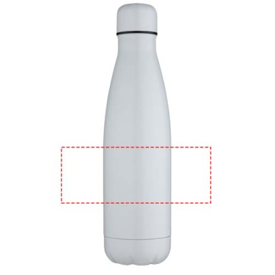Dubbelväggig och vakuumisolerad flaska i rostfritt stål med en speciell beläggning på utsidan som möjliggör sublimeringstryck. Det isolerade rostfria stålet håller dryckerna varma eller kalla i flera timmar. Med en bas som passar i de flesta mugghållare. Glänsande finish. Levereras i en presentförpackning av återvunnen kartong. Volymkapacitet: 500 ml.