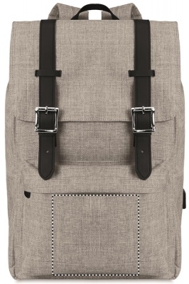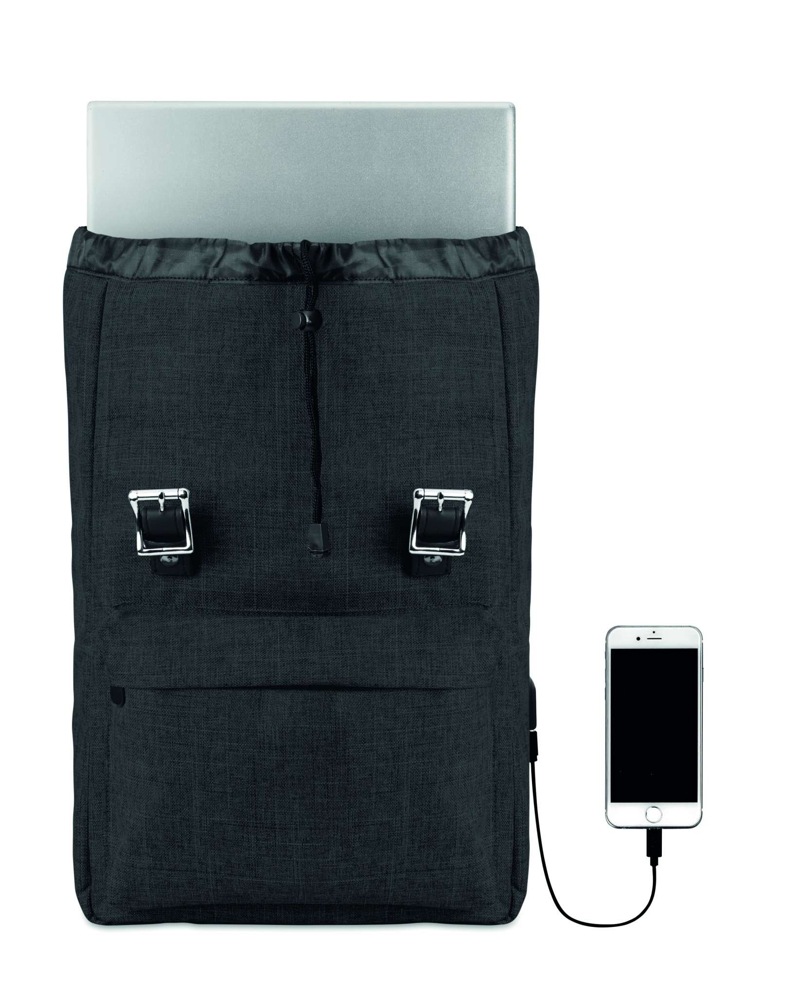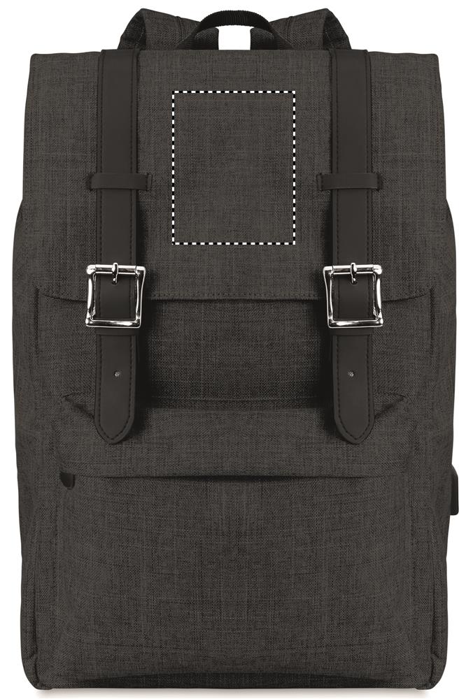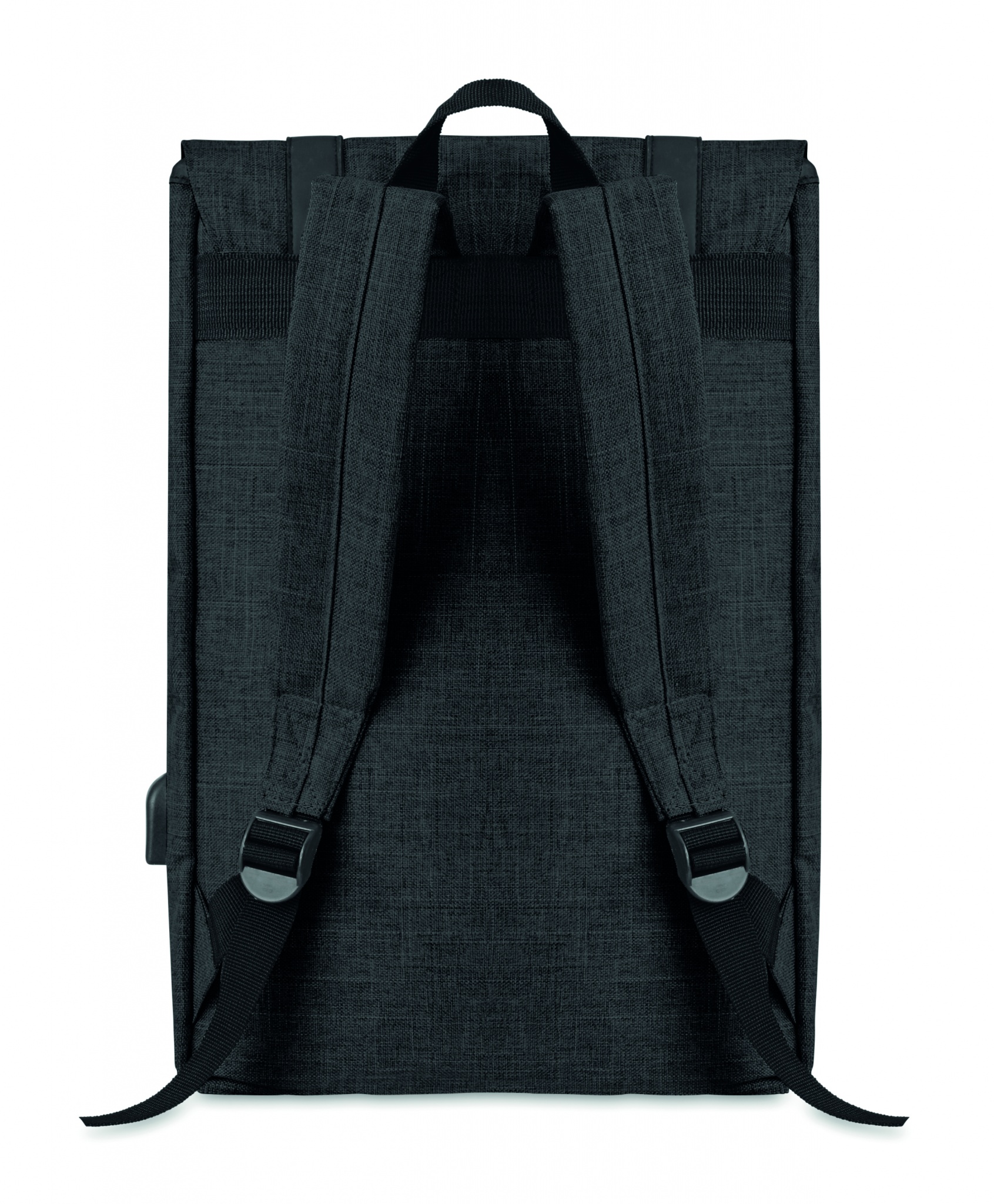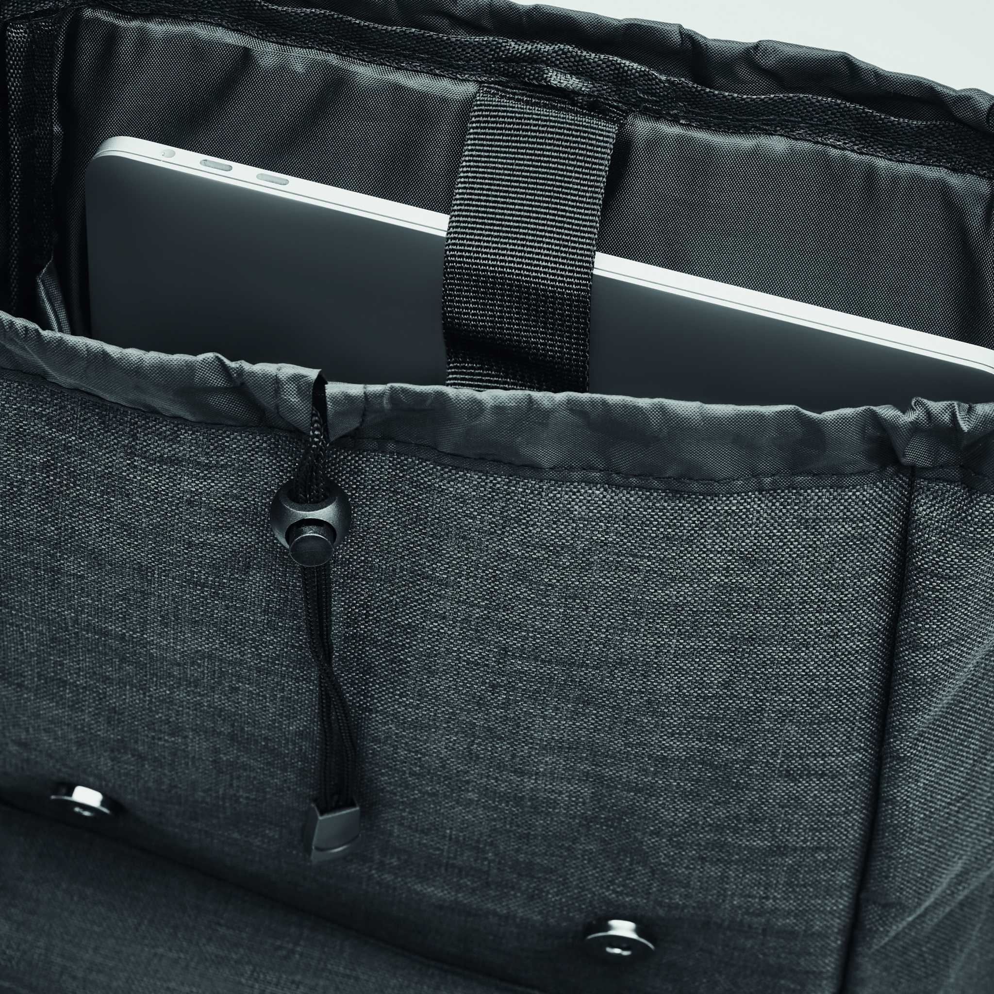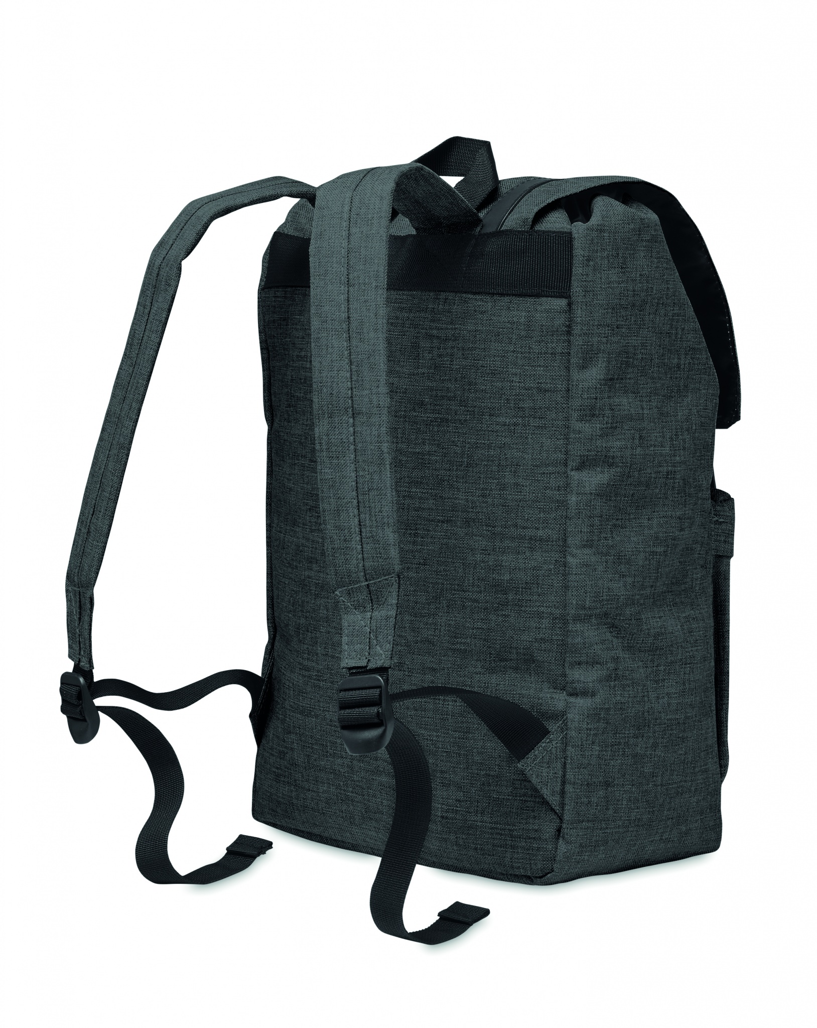 Ryggsäck för laptop i duo ton 600D polyester. Datorryggsäcken har vadderade axelremmar och huvudfack med plats för upp till 15'' dator samt laddkablar. Snabbspänne med magnet och ett frontfack med dragkedja.
