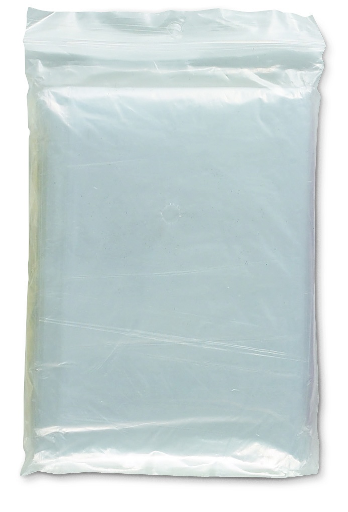 Vikbar regnponcho med huva i polyeten material, förpackad i en genomskinlig plastpåse.