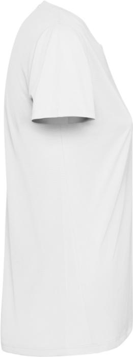 Kortärmad, figursydd teknisk T-shirt för dam. Krage med matchande sömmar. Bakre fållen något längre än den främre. Sidosömmarna har flyttats framåt.