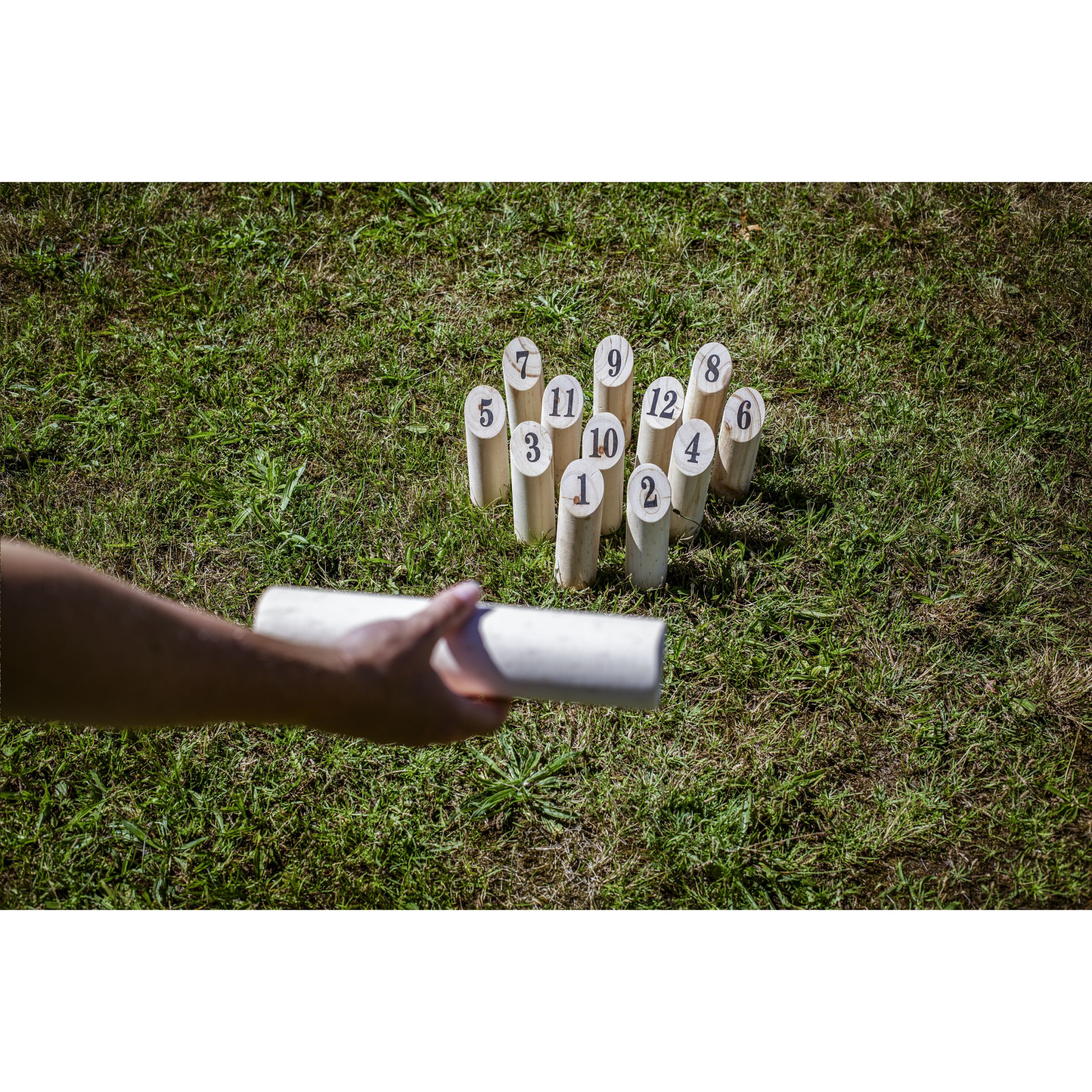 Träkastspel, även känt som finska käglor. Vem blir den första att nå de 50 poäng som krävs? Det här finska festspelet utomhus kräver skicklighet, precision och strategi. Kul att leka på en camping eller på stranden. Lämplig för spelare både unga och gamla. Setet med 13 delar kommer i en bomullspåse. Inkl. instruktioner. Varje artikel levereras i en individuell brun kartong.
