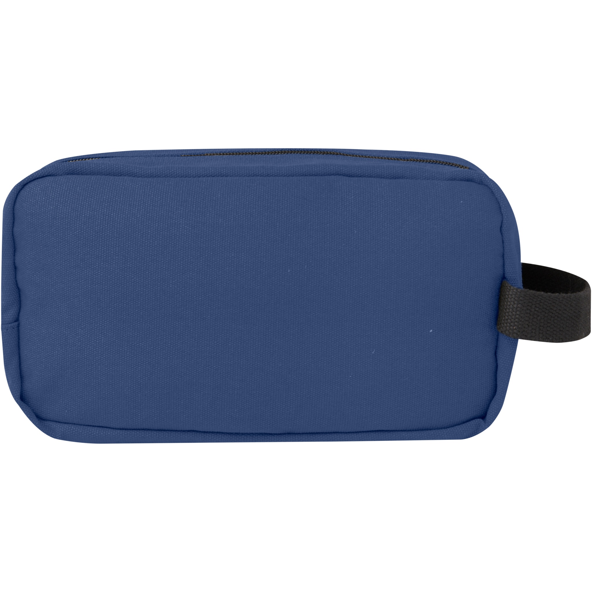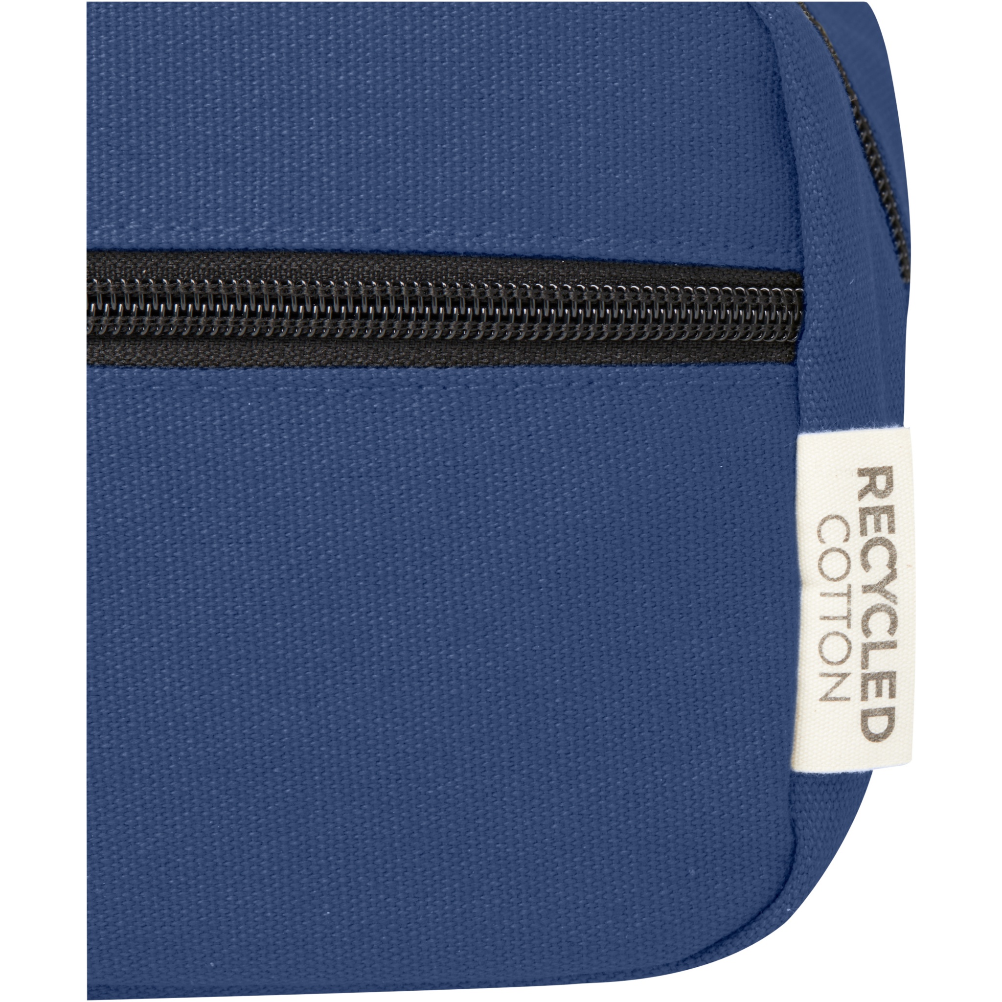 Väska för resetillbehör tillverkad av GRS-certifierad återvunnen canvas och GRS-certifierat RPET-foder. Med en framficka med dragkedja och ett huvudfack med dragkedja med organisationsfickor och en bekväm väv. Den dekorativa metallplattan kan få en logotyp att lysa med sin subtila och matta finish. Kapacitet: 3,5 liter.