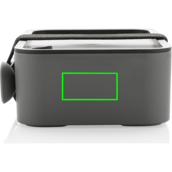 Stilig och rejäl lunchlåda som passar lika bra för en sallad eller smörgåsar. Tillverkad av 93% GRS certifierad återvunnen PP, GRS certifiering säkerställer en helt certifierad leveranskedja av de återvunna materialen. Inklusive en praktisk spork (sked/gaffel) och ett elastiskt band. Volym: 0,8 liter. Lunchlådan är lätt att rengöra, men bör inte placeras i diskmaskinen eller användas i mikrovågsugnen.
