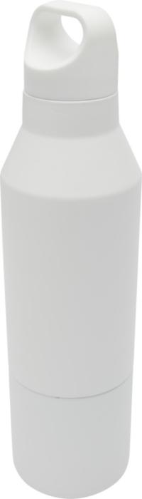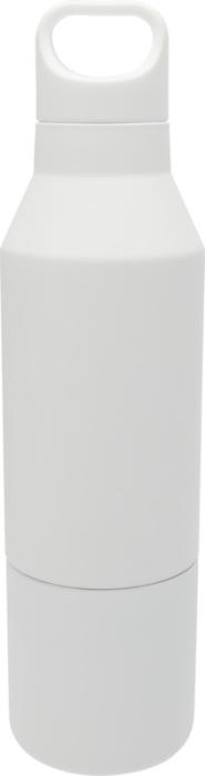 RCS-certifierad dubbelväggig kopparisolerad flaska i rostfritt stål med avtagbar mugg. Denna multifunktionsflaska är utformad för att passa i sidofickan på en ryggsäck och har ett praktiskt bärhandtag som är integrerat i locket. Slitstark ytbeläggning på utsidan. Håller drycker varma i 12 timmar och kalla i 24 timmar. Levereras i en presentförpackning av återvunnen kartong. Flaskans volymkapacitet: 600 ml. Koppens volymkapacitet: 300 ml.