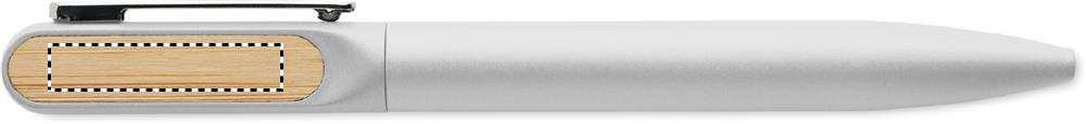Penna med vridmekanism och kropp av återvunnen aluminium, mekanism av återvunnen ABS och metallklämma med bambudetalj. Blått bläck.