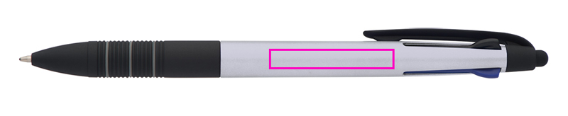 4-i-1 plastkulpenna med 3 olika skrivfärger (blå, röd och svart) + touchfunktion och gummerad greppzon. Vi trycker din logotyp på skaftet.