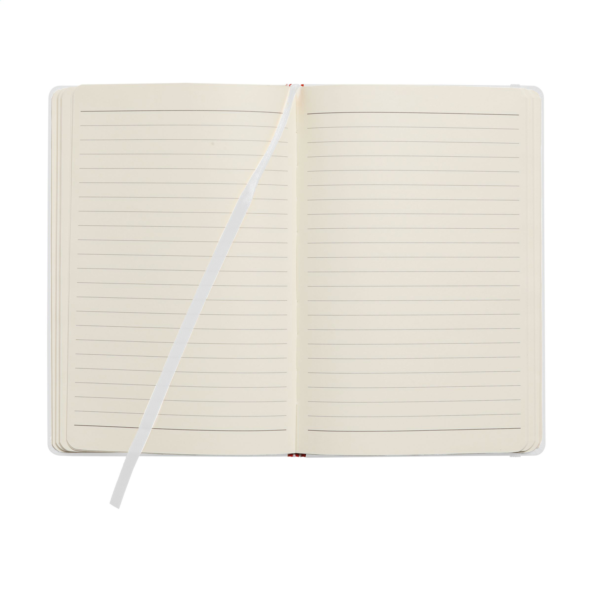 Anteckningsbok i A5-format med ca. 96 ark/192 sidor sidor av krämfärgat, fodrat papper (80 g/m²). Med perfekt bindning, hårt omslag, ficka, elastiskt fäste och sidenband.